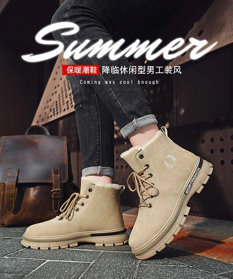 Зимние новые мужские ботинки-мартинсы, повседневные, с вельветовым покрытием, хлопковая обувь, Утепленные зимние ботинки с высоким берцем, Короткие Плюшевые ботинки