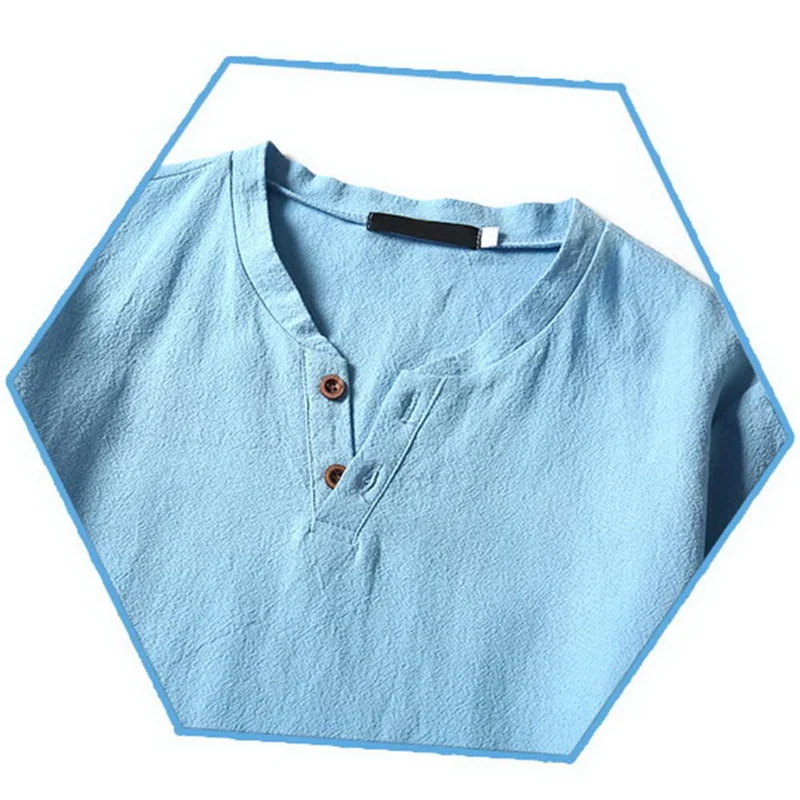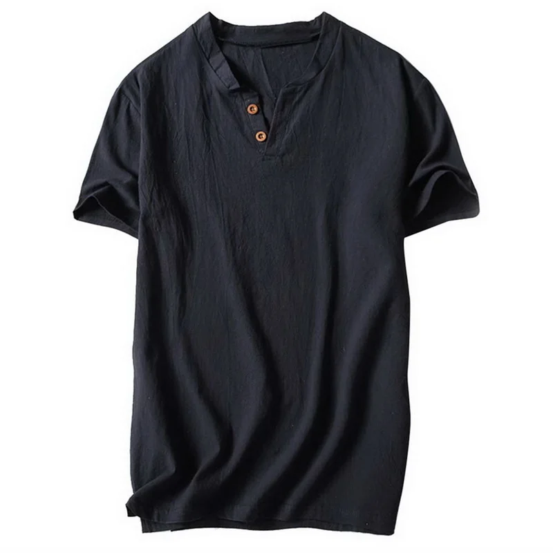 Рубашка мужская с коротким рукавом, повседневная из хлопка и льна, свободная сорочка с воротником на пуговицах, шелковая, весна-лето