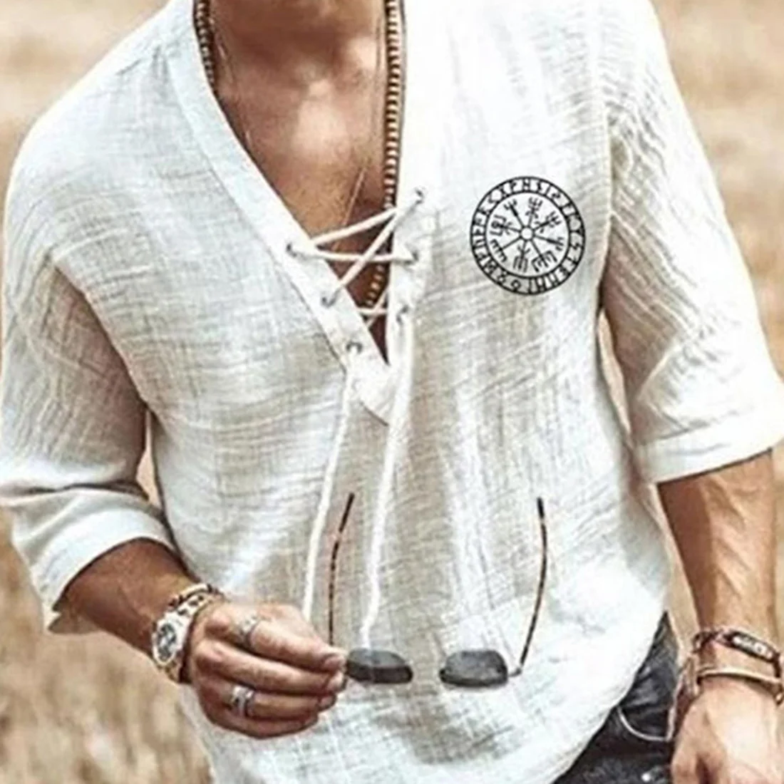 WENYUJH Мужская модная льняная рубашка в стиле хиппи, повседневная,...