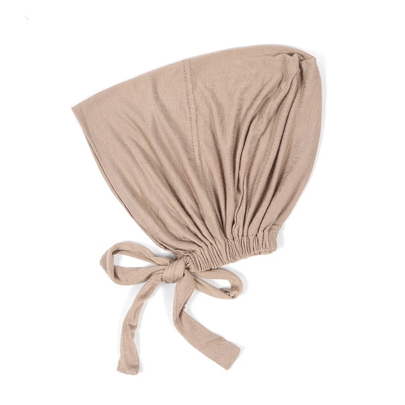 Модный Премиум Джерси, мусульманский Внутренний эластичный хиджаб с веревкой, Регулируемый Женский платок, однотонный мусульманский тюрбан, головной убор