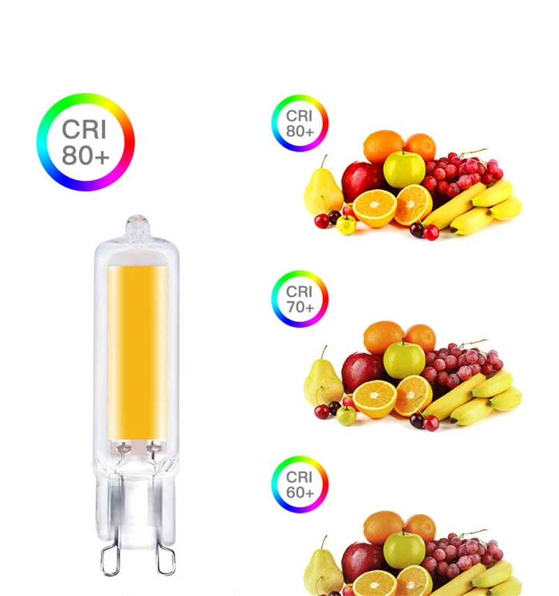 Тип основания: G9Мощность: 6 Вт/9 Вт/12 ВтЦветовая температура: теплый белый/холодный белыйВходное напряжение: 220 В-240 В переменного токаУгол луча: 360 °Материал: стекло(Чип на плате) Срок службы: 50000 часовCRI>85Ra
