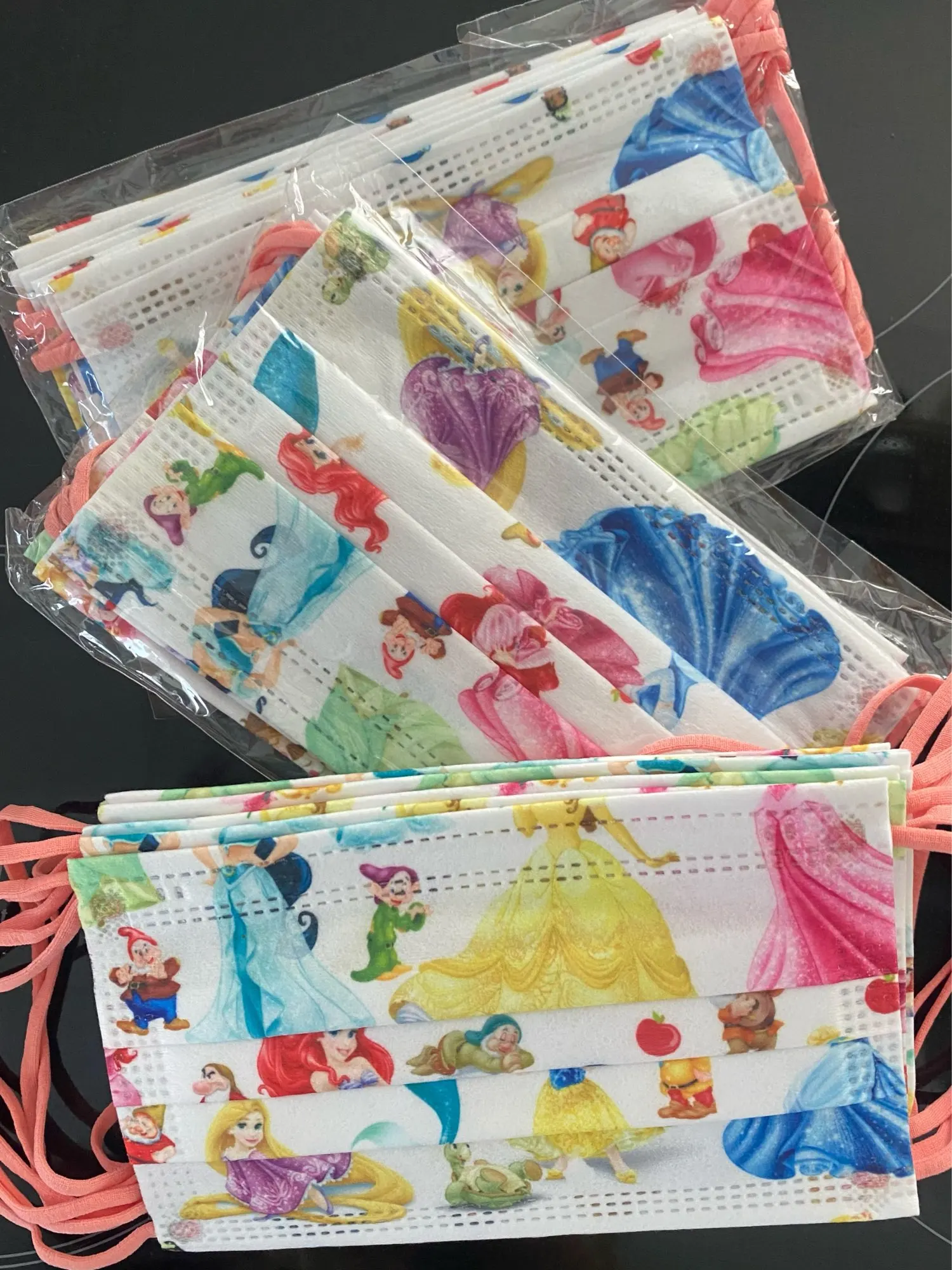 Маски классные. Доставка в Испанию, очень быстрая, менее 2 недель и дома. Единственный недостаток..., что 93 единицы прибыли, вместо 100, но я не открыл спор, потому что продавец говорит, что отправит их..., Я надеюсь, что это делает свое слово... В остальном... они очень хорошие, хотя и несколько дорогие, но это то, что есть с этими рисунками...