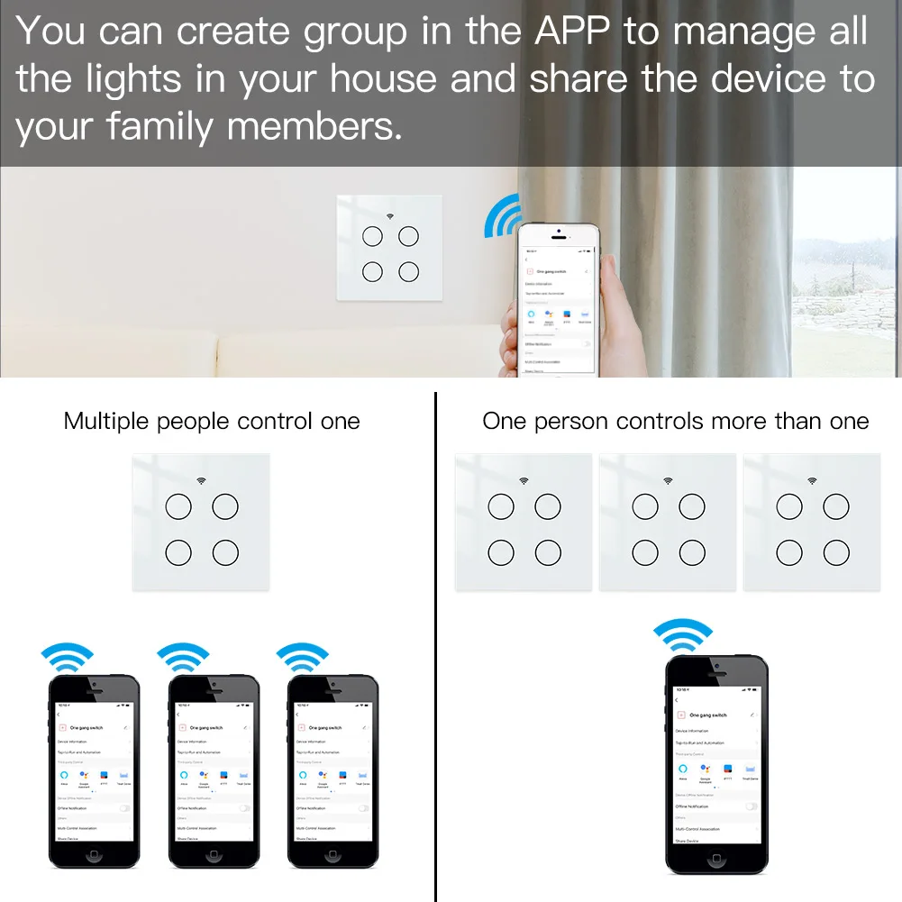 Смарт-переключатель с Wi-Fi, 4 клавиши, голосовое управление, поддержка Alexa Google 23