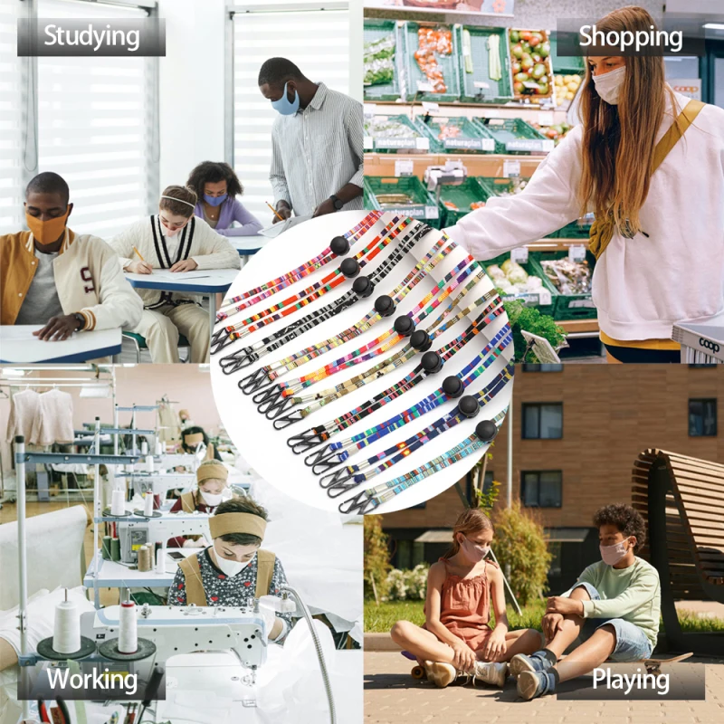 Именно то, что вам нужно для основных сотрудников-Прикрепите Маленькие крючки к эластичным лентам на маске. Как фиксатор очков, Просто наденьте его поверх головы и наденьте как ожерелье. Будет работать с вашей существующей ушной заставкой или повязкой на голову