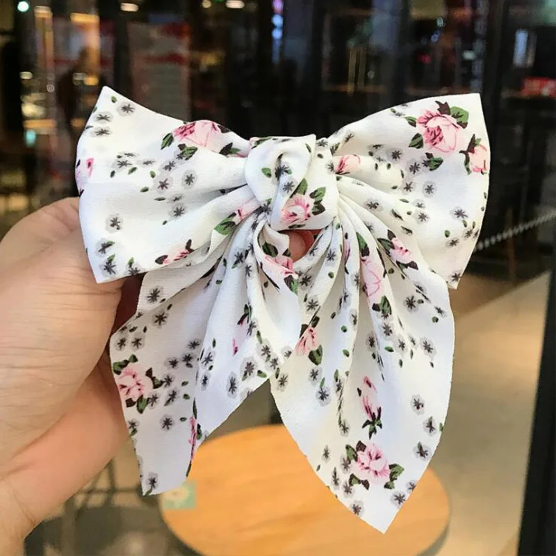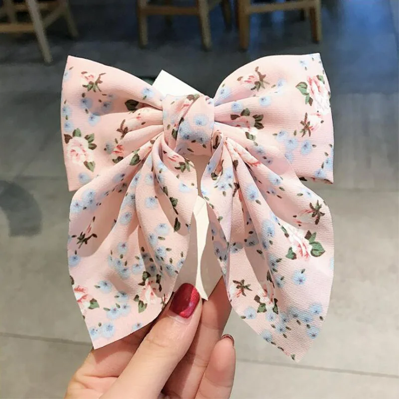 Заколки для волос в горошек с цветочным принтом для девочек, заколка для волос с бантом-маргариткой в пасторальном стиле, женская заколка с большим бантом, Шпилька для волос, аксессуары для волос в подарок