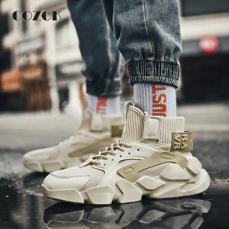 Кроссовки мужские высокие, повседневная мягкая обувь, амортизация, высокие, белые, осень