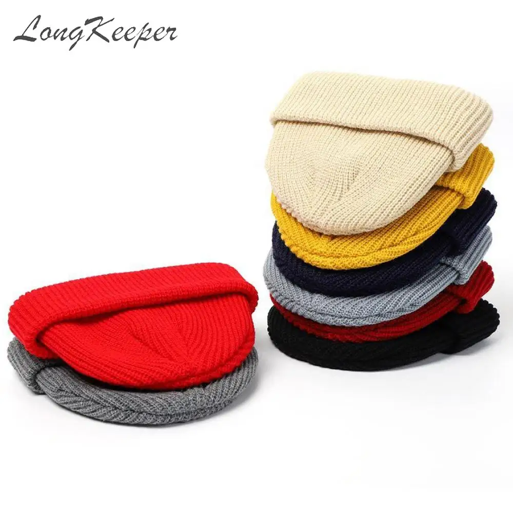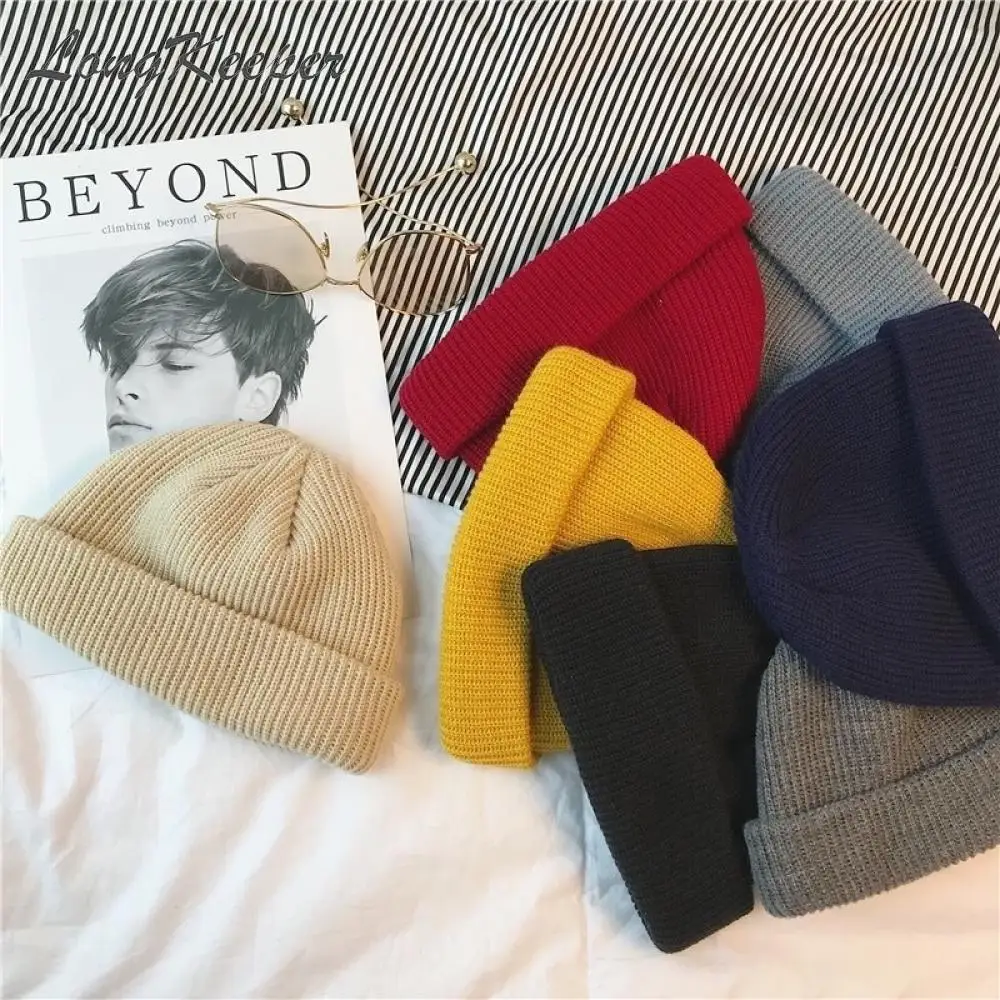 Зимняя вязаная шапка для мужчин и женщин ретро однотонные шапки Осенняя шапочка-бини шапки Теплые...