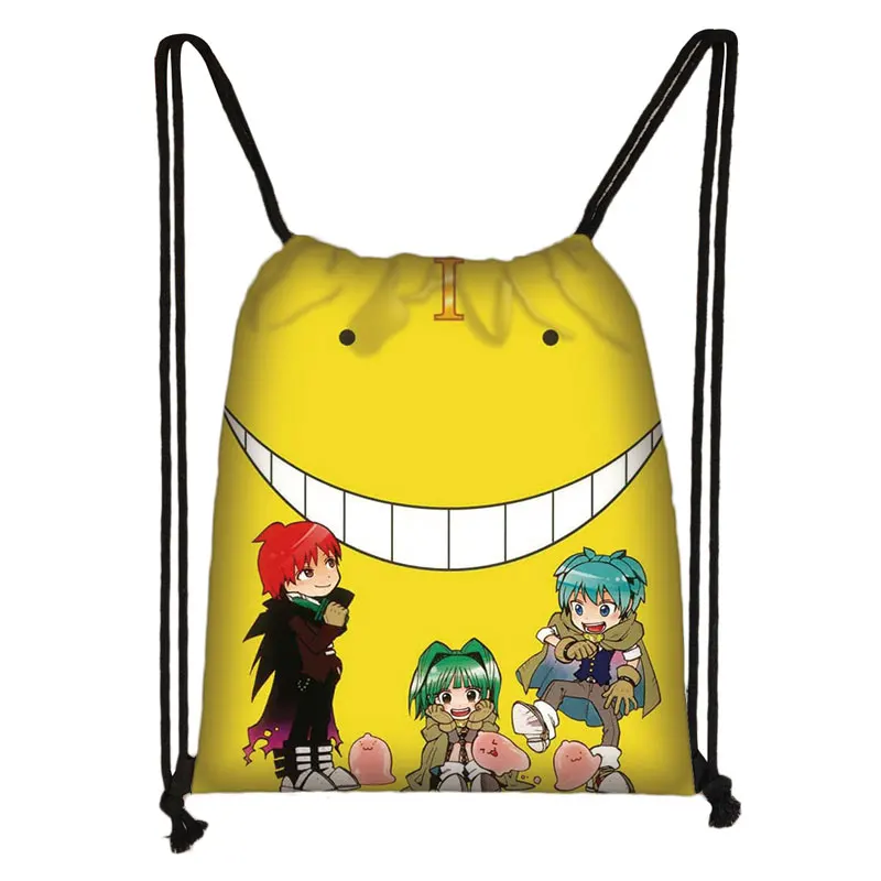 Популярная сумка на шнурке с рисунком аниме, женская школьная сумка...
