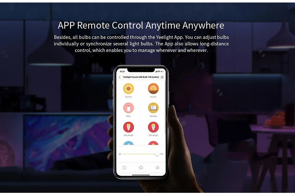 ♗Используя приложения Yeelight для iOS и Android, вы можете удаленно управлять освещением в любое время и в любом месте.