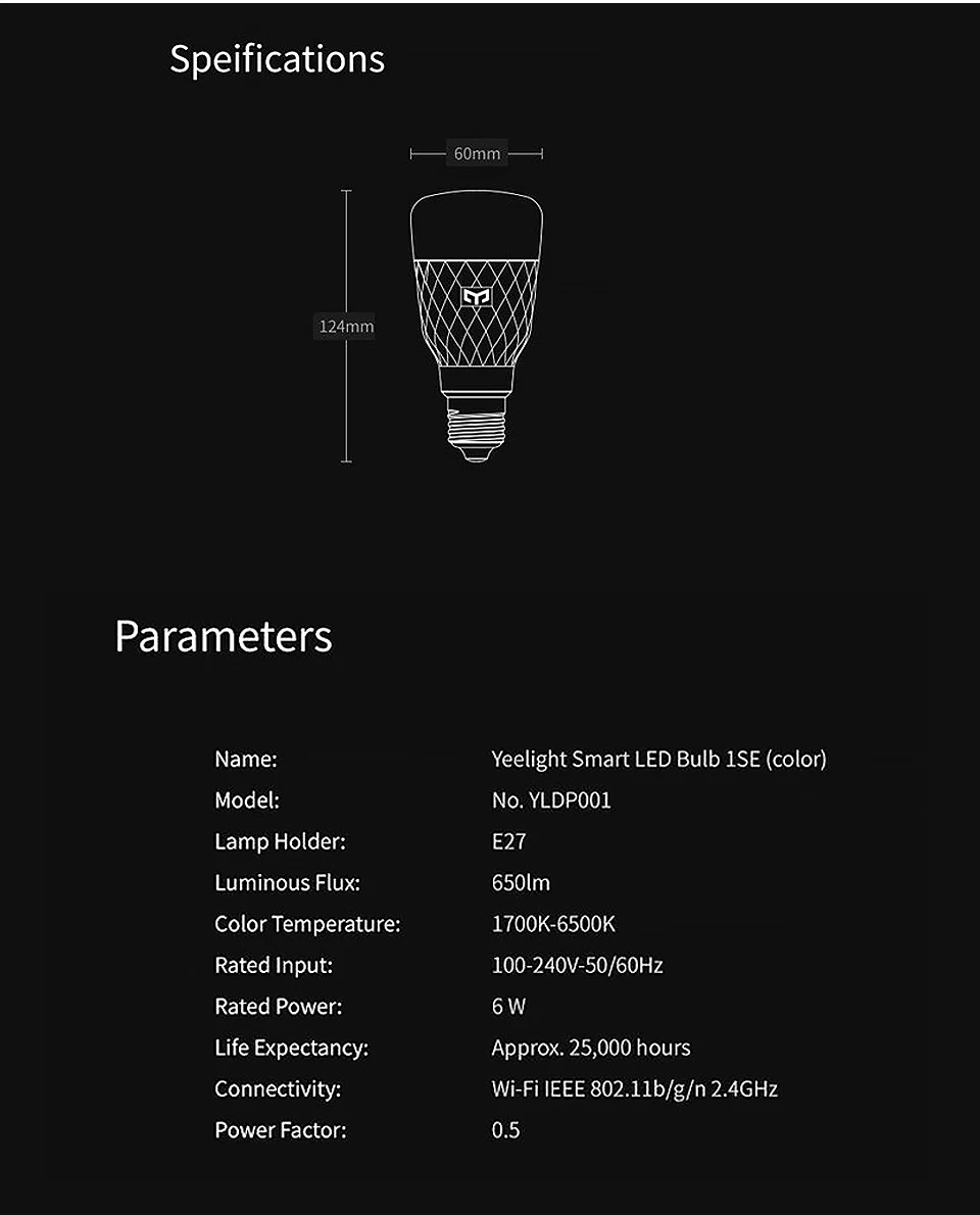⚠Примечание: лампочка 1se не подключается к домашнему комплекту!Номинальный Вход: 100-240в-50/60 Гц