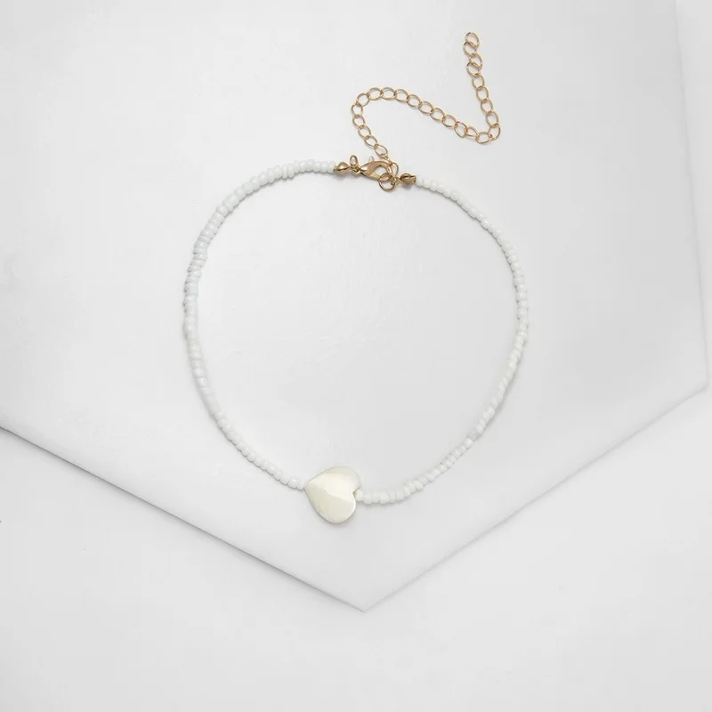 Модное женское ожерелье, ожерелье из белых рисовых бусин, геометрическое ожерелье из бисера в форме сердца с фестонами, Kpop-девушки, ювелирные изделия