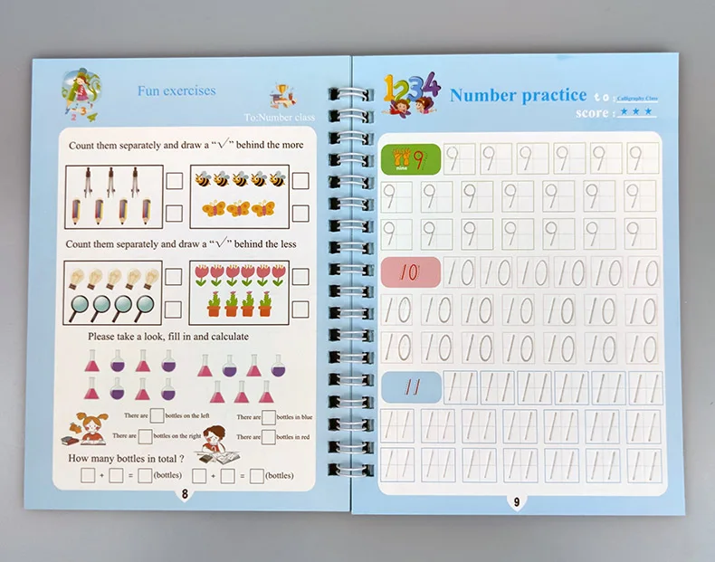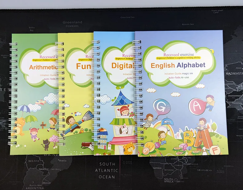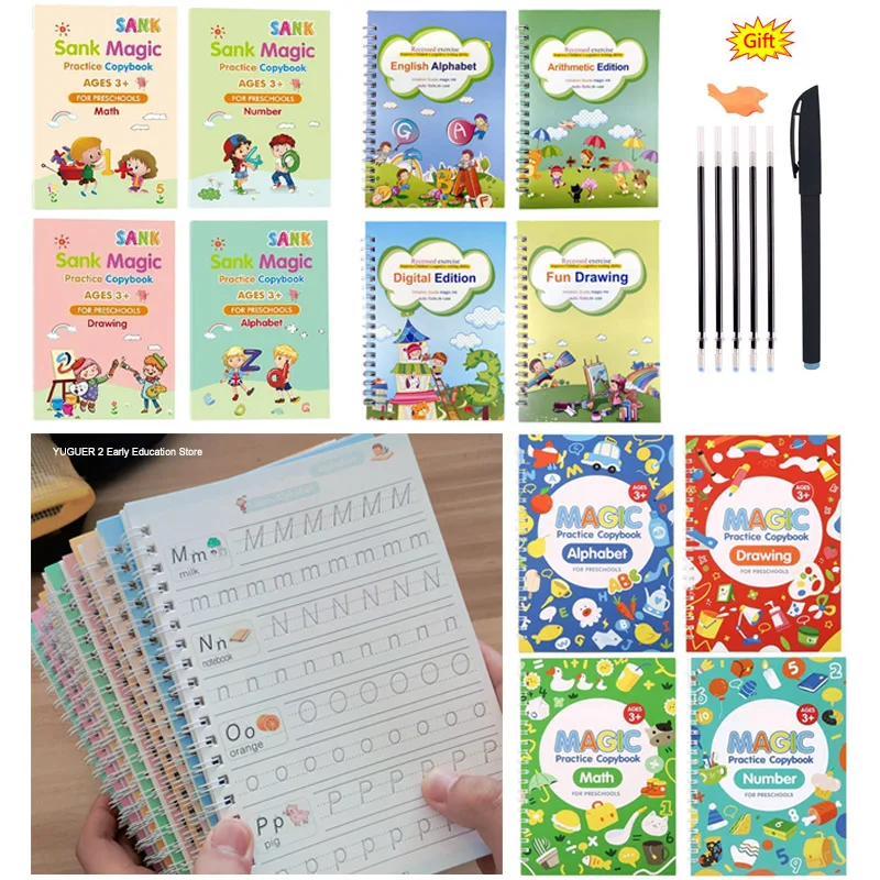 4 книгинабор волшебных упражнений, Многоразовые Детские игрушки для письма, английские цифры и буквы, 3d-каллиграфия Монтессори