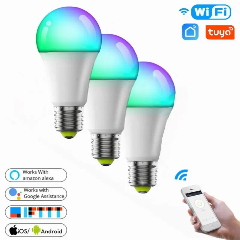 Умный светодиодный RGB-светильник E27 с регулируемой яркостью, осветсветильник Led-лампа с изменением цвета, 10 Вт, RGBW, с Wi-Fi и Bluetooth-управлением