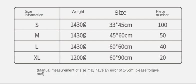 Размер L 60*60 см 40 шт./упак., XL размер 60*90 см/20 шт./упак.