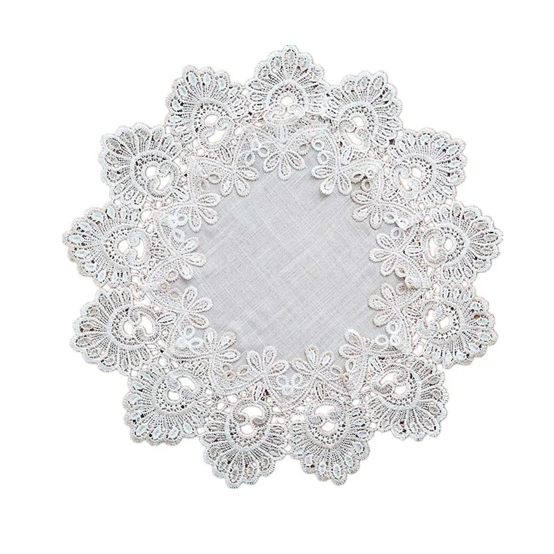 Современная Высококачественная льняная круглая скатерть с кружевной отделкой, скатерть для спальни, балкона, небольшая скатерть, кухонные вечерние украшения