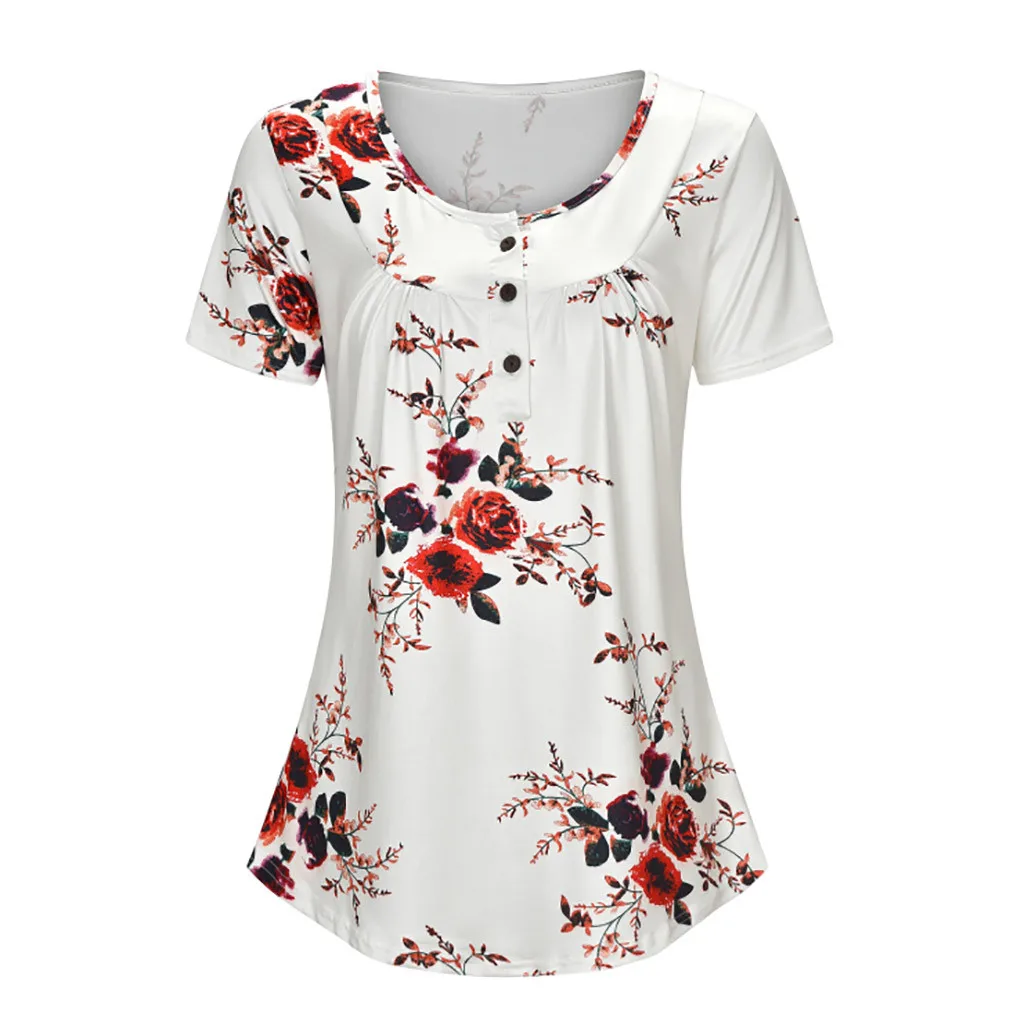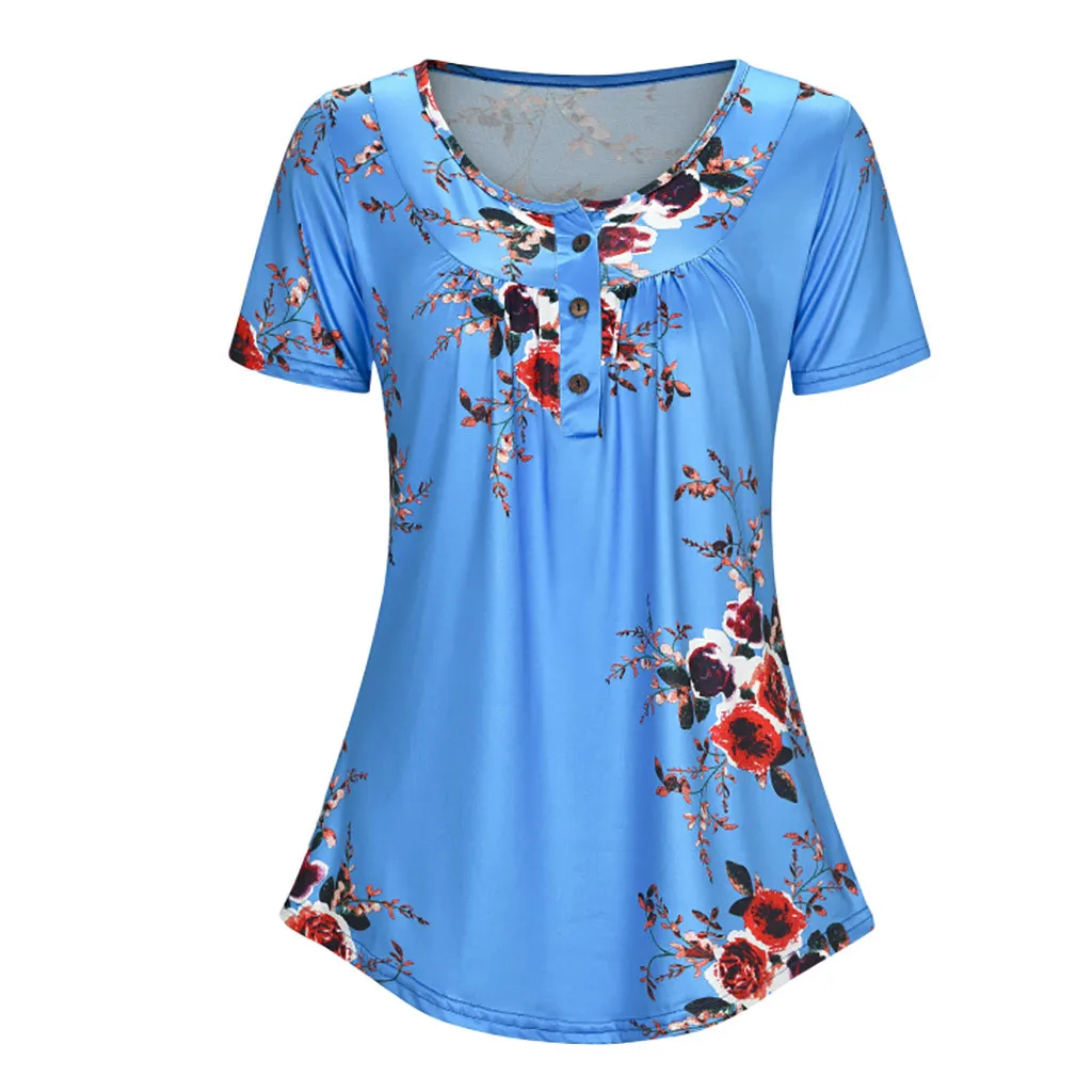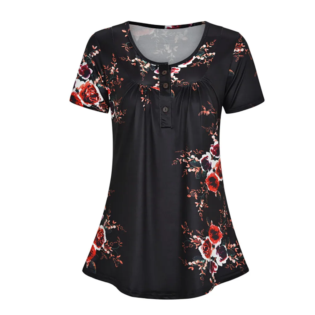 Женская Повседневная свободная туника с коротким рукавом и пуговицами
