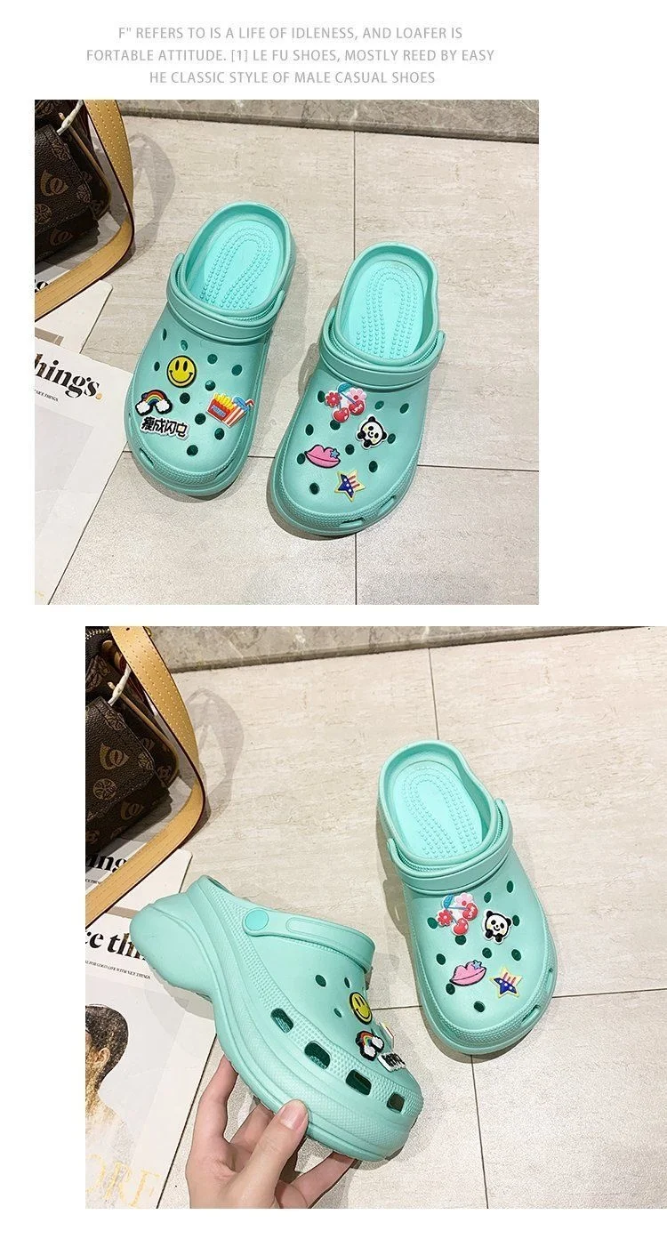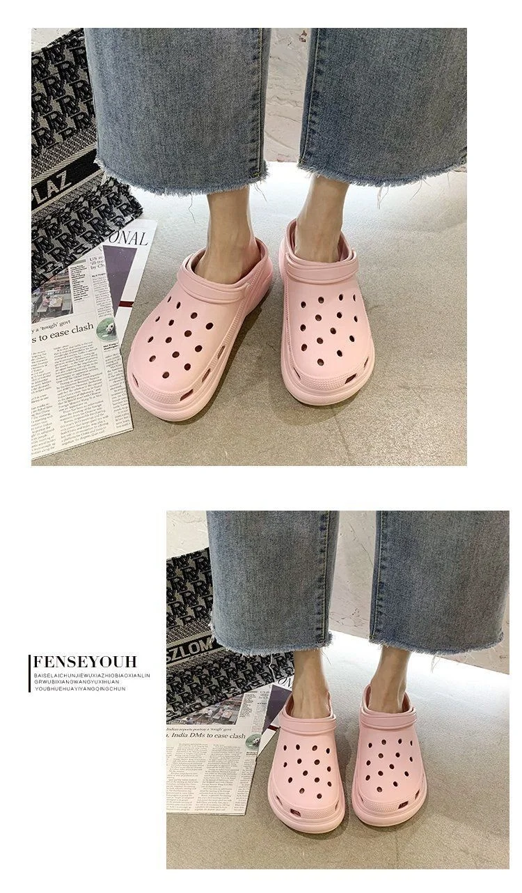 [Возвратная упаковка за транспортировку] Новинка 2021 года; Женские толстые тапочки на подошве; Яркие цвета; Высокие сандалии; Пляжная Нескользящая универсальная обувь с дырками