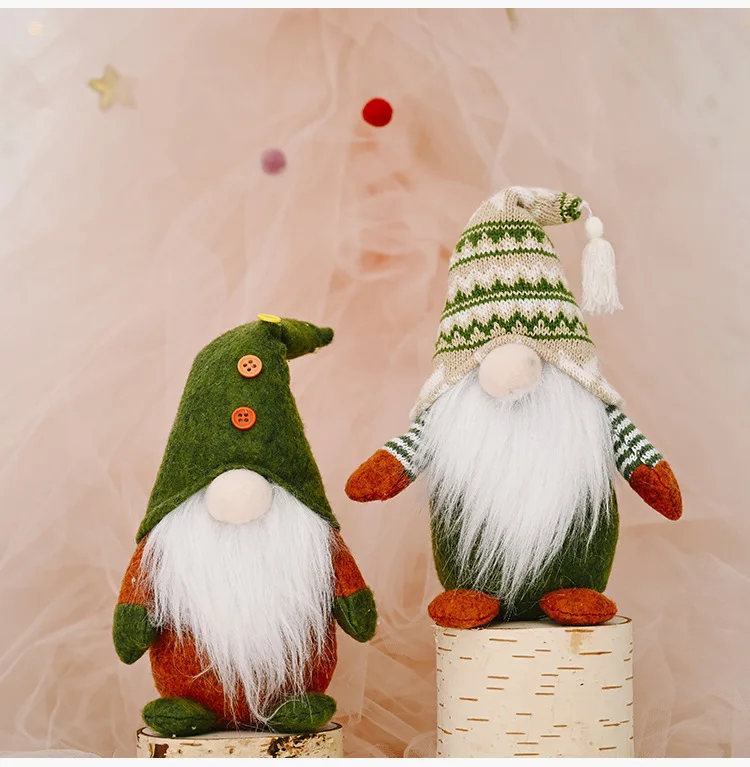 Рождественское домашнее украшение, зеленая безлицевая гномовая кукл...