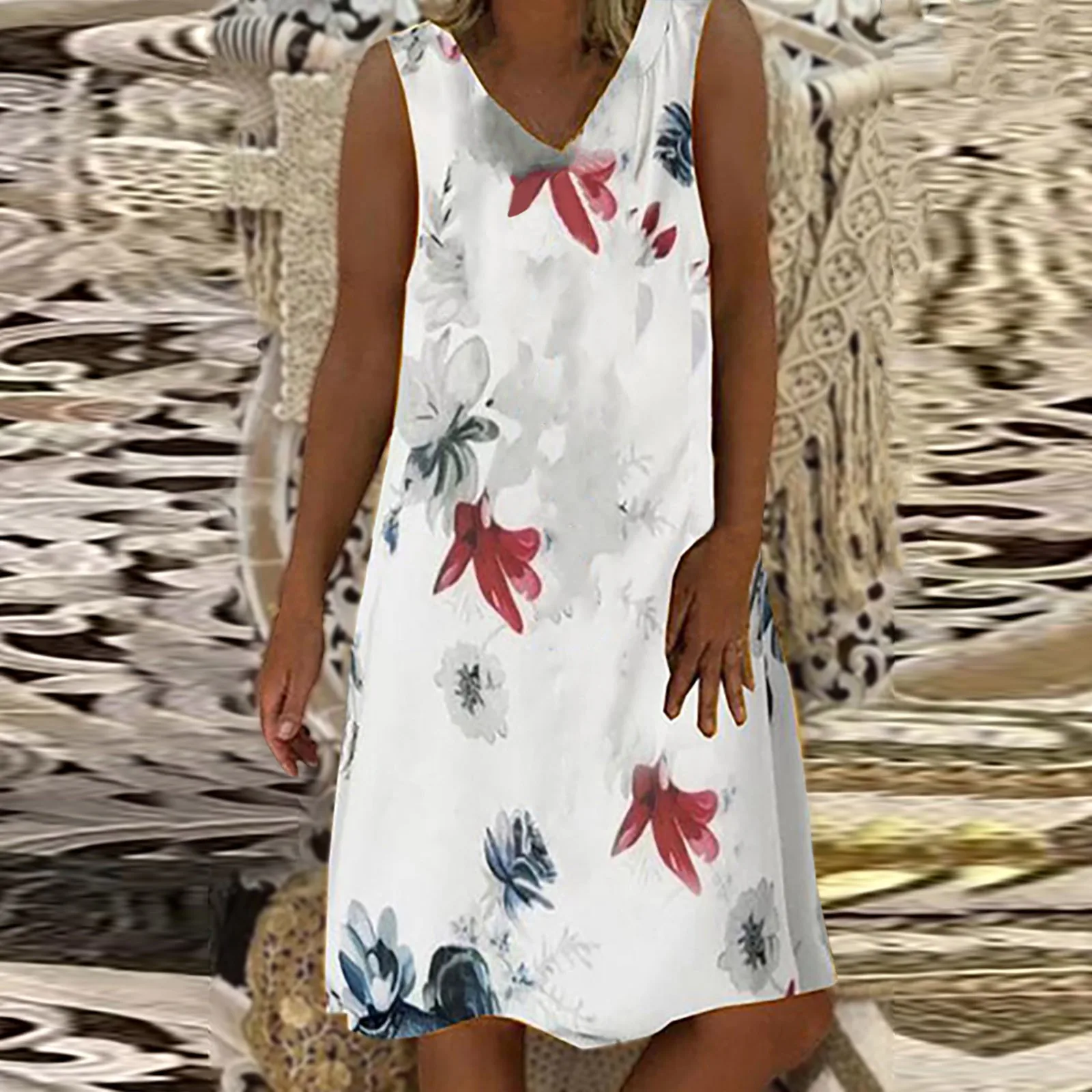 Цветочные платья без рукавов и с принтом для женщин, повседневное летнее пляжное платье с v-образным вырезом для отдыха, летнее платье для женщин, плюс размер, сарафан