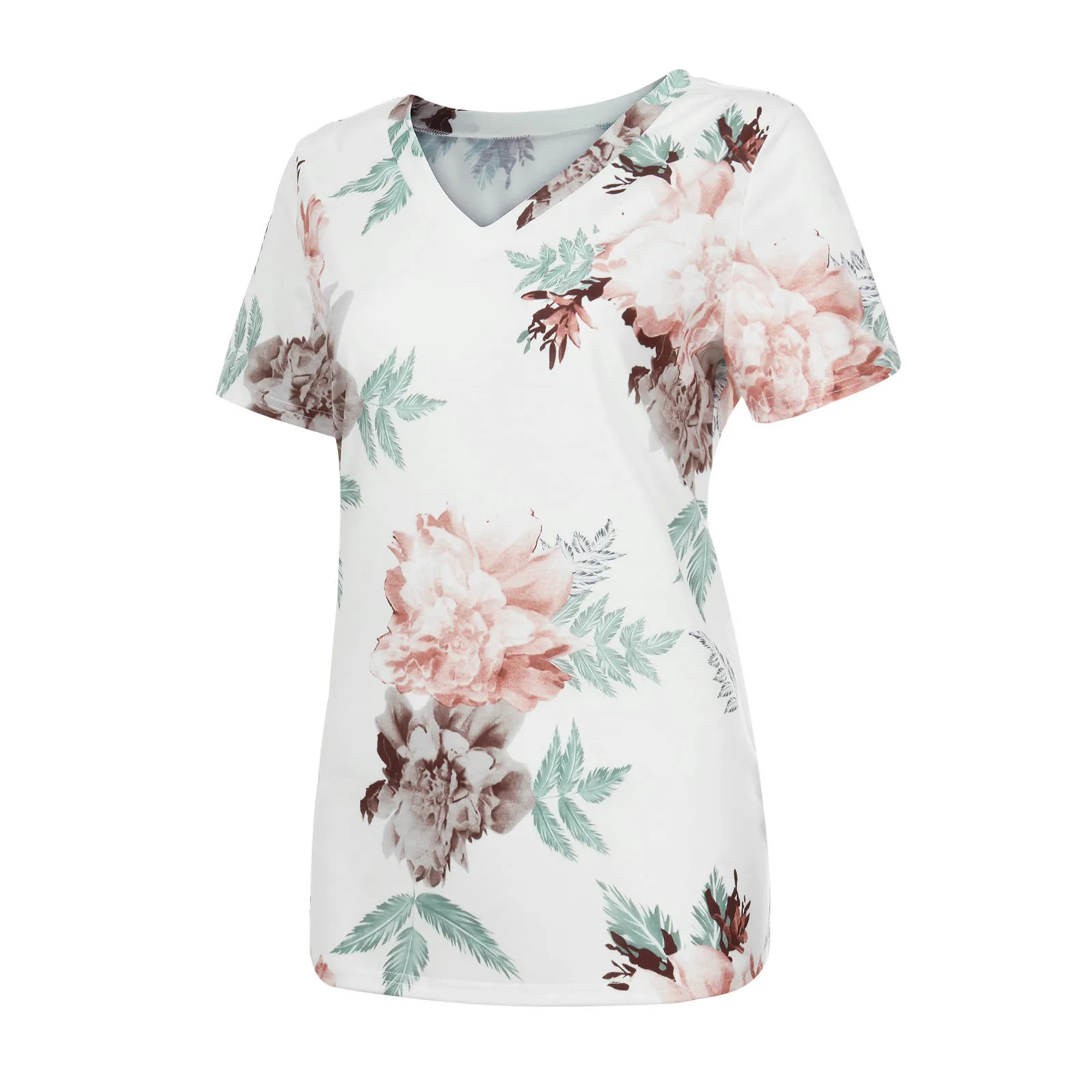 Блузка женская свободного покроя с V-образным вырезом и коротким рукавом
