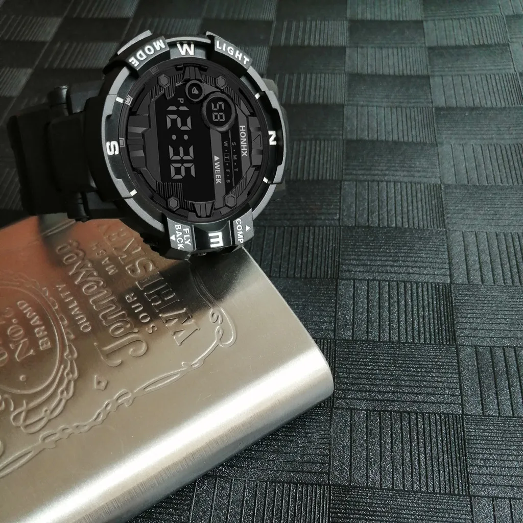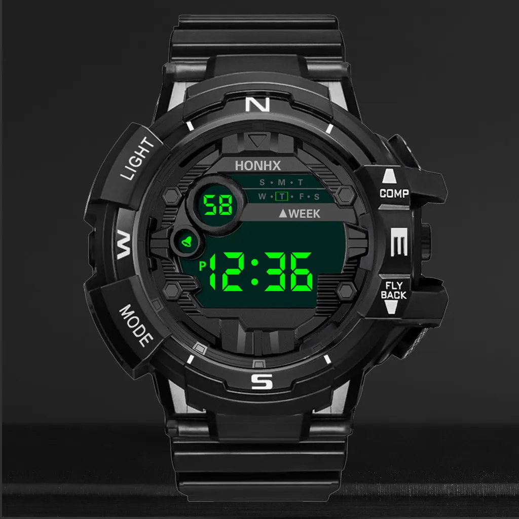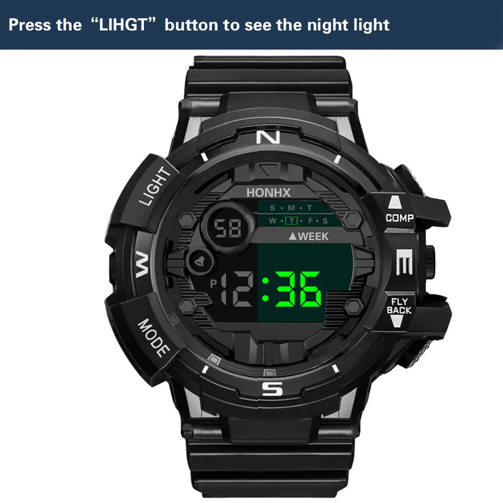 Наружные многофункциональные спортивные часы, мужские классические секундомер, электронный светодиодный наручные часы с подсветкой, 50 м водонепроницаемые цифровые часы Выбор материалов: высококачественный ремешок для часов из искусственной кожи, высококачественный чехол для часов из поликарбоната, прозрачная зеркальная поверхность из смолы, нижняя крышка из нержавеющей стали, Пряжка из нержавеющей стали Глубина водонепроницаемости 50 м: Не стесняйтесь носить часы, когда вы мочите под дождем, принимайте душ или Мойте руки. Но не нажимайте кнопки под водой. Также избегайте использования при экстремальной горячей или холодной температуре Многофункциональность: отображение времени, секундомер, задний светильник, отображение даты, отображение недели, будильник времени, 12/24 ежечасный, водонепроницаемый, ударопрочный, Модный стиль, многофункциональный дизайн, тонкое мастерство, не пропускать часы, стоит получить его и лучший выбор для подарков