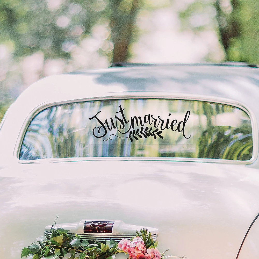 Только что замужем Съемные Наклейки на стены Diy обои для свадьбы автомобиля виниловая роспись Свадебный декор комнаты Наклейка на стену 26 "x 10"