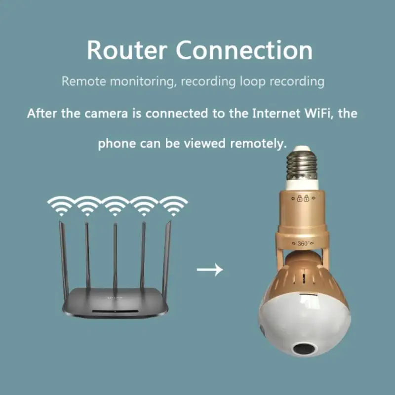 Умная панорамная камера рыбий глаз, 360 , WIFI, E27, 1080P