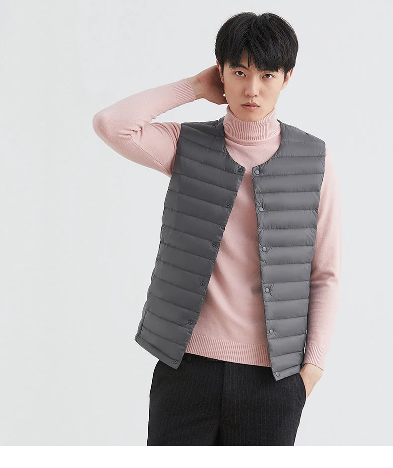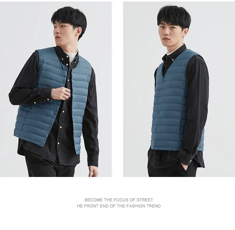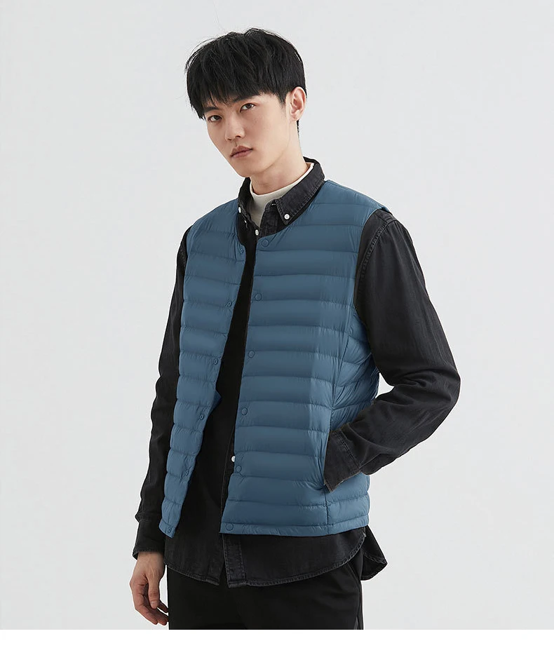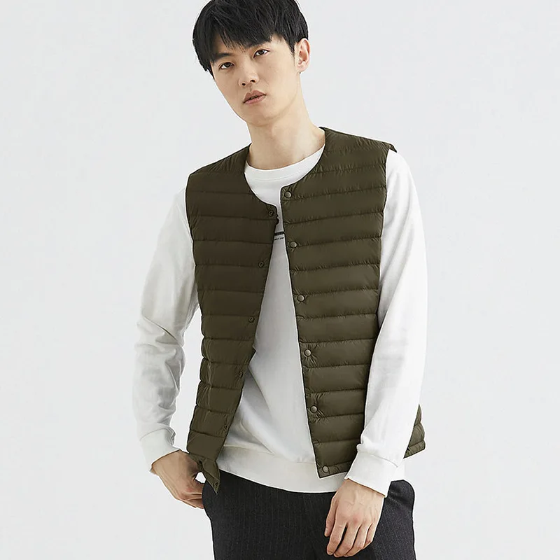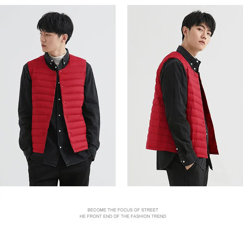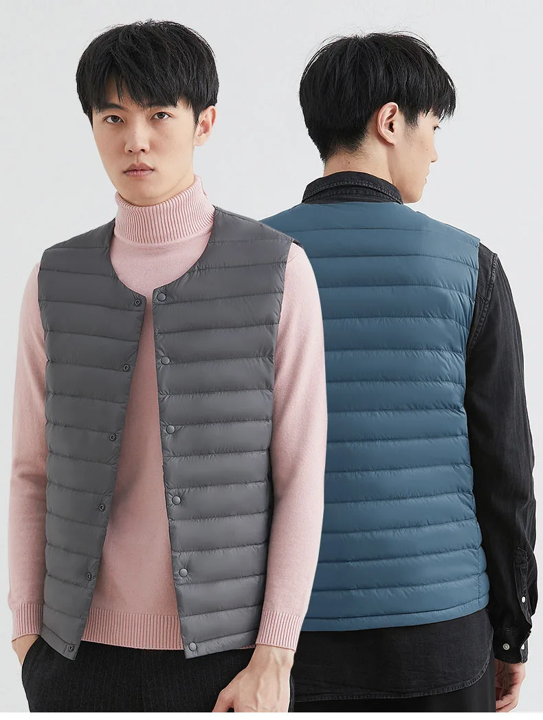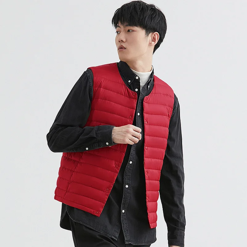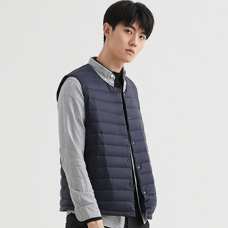 Новинка 2022, осенне-зимний ультра легкий пуховой жилет для мужчин, портативная безрукавка без воротника, мужской жилет с круглым вырезом, тонкое пуховое пальто