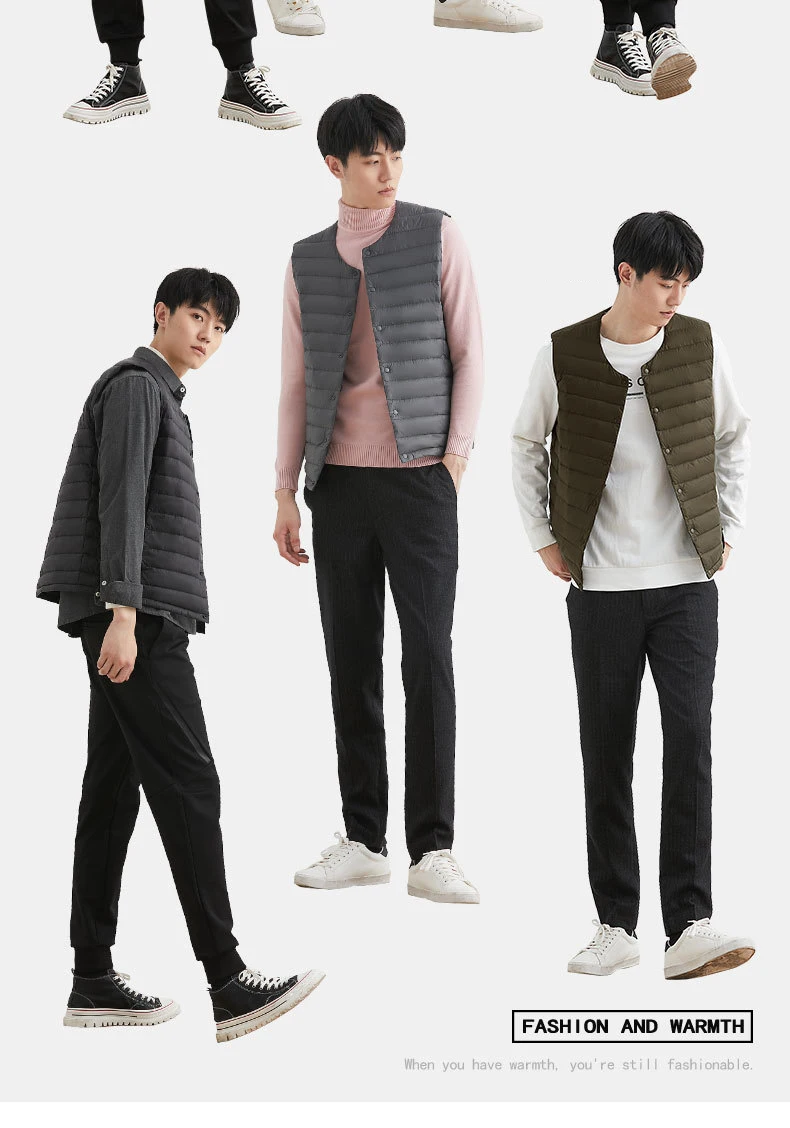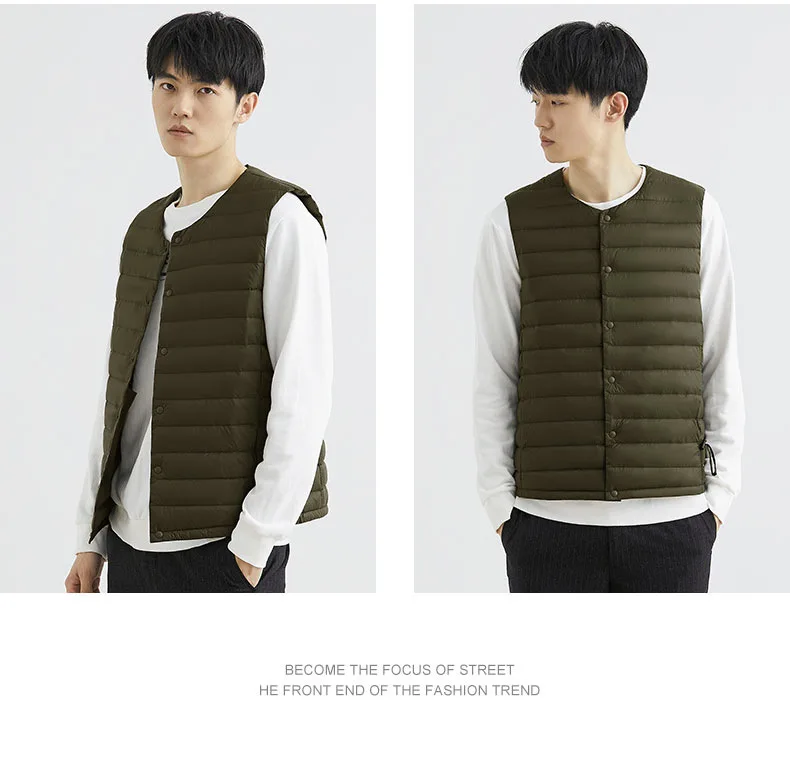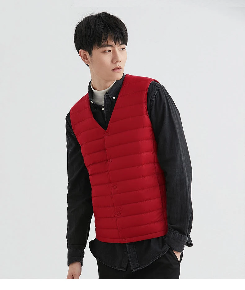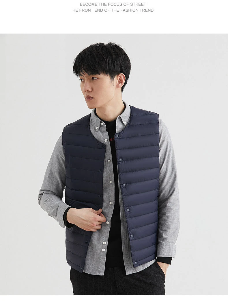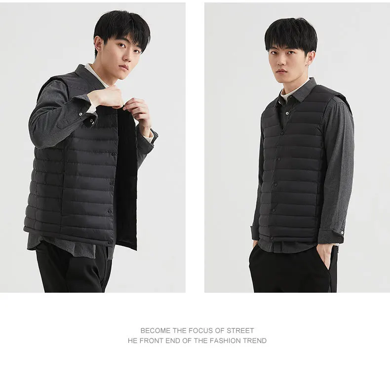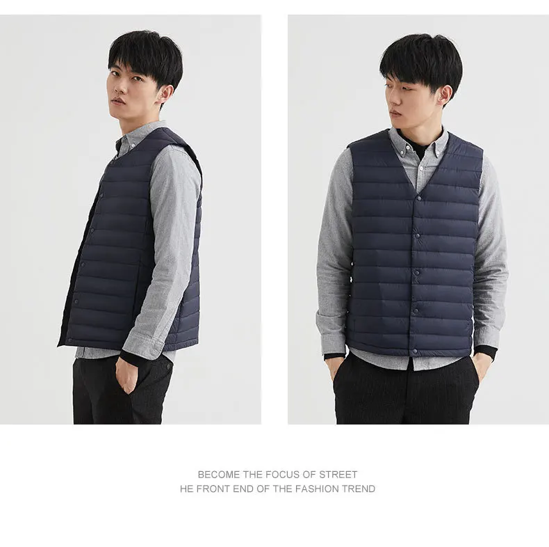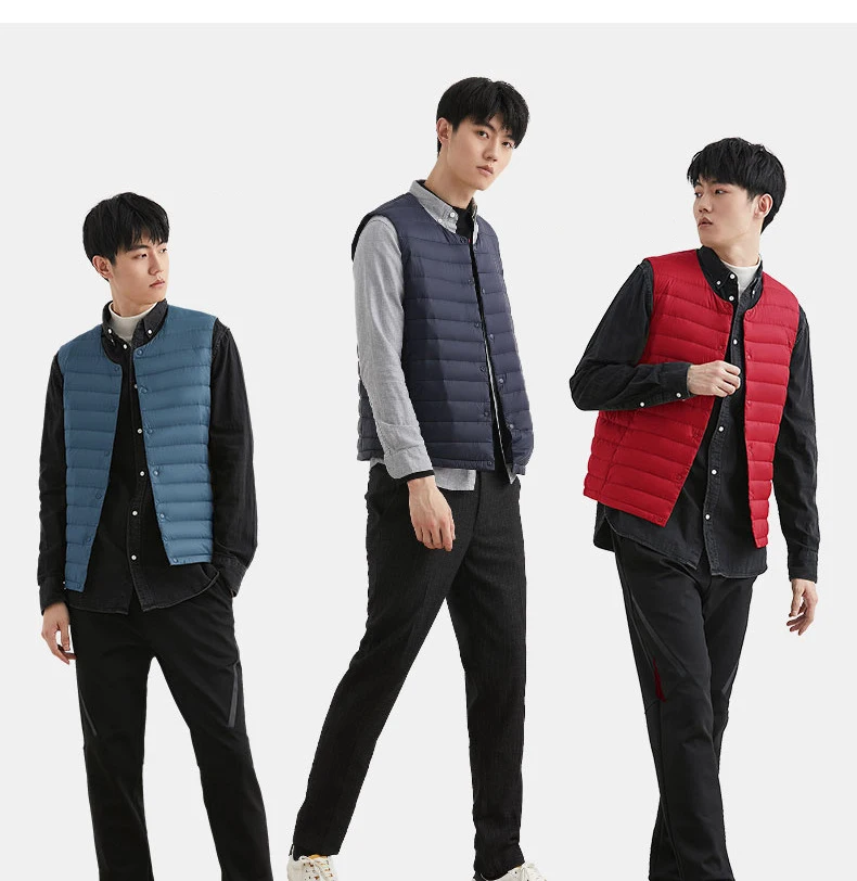 Новинка 2022, осенне-зимний ультра легкий пуховой жилет для мужчин, портативная безрукавка без воротника, мужской жилет с круглым вырезом, тонкое пуховое пальто