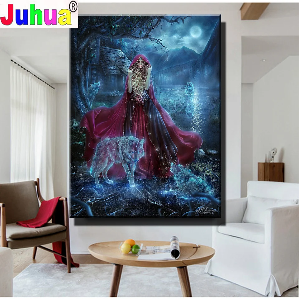 Волк женщина Diy Алмазная картина полный квадрат/круглая дрель 5d Бриллиантовая вышивка Фэнтези Темный красный девушка 3d Вышивка крестом,