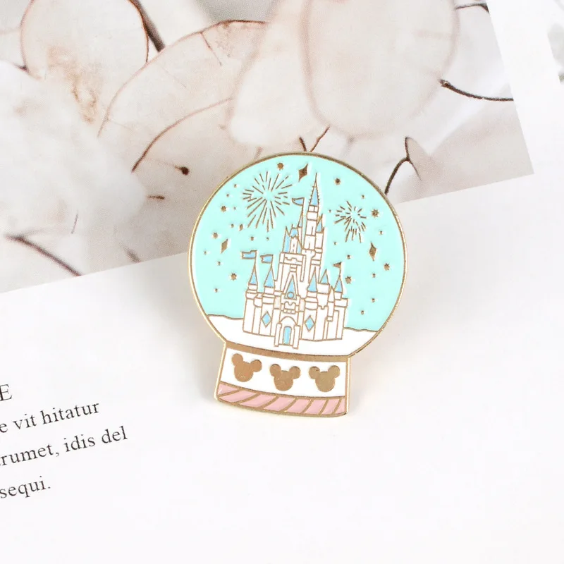 Эмалированная булавка в виде замка мечты с хрустальным шариком, ска...