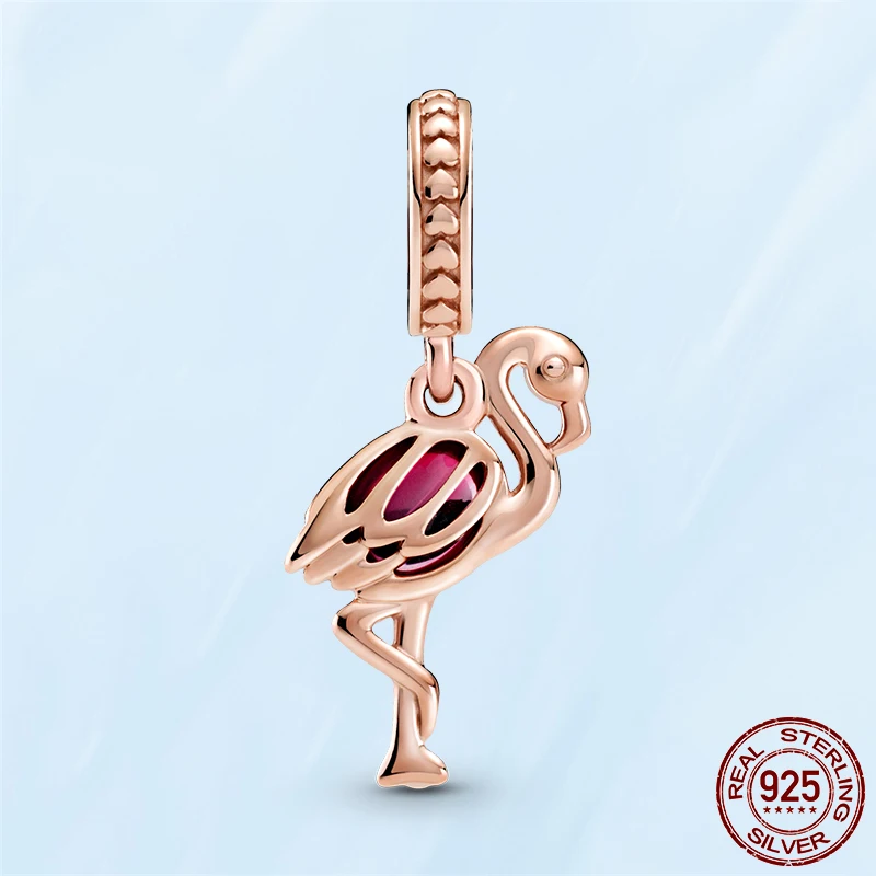 Новые летние розовые подвесные бусины из муранского стекла в виде фламинго серебряного цвета подходят для изготовления оригинальных ювелирных изделий браслетов Pandora