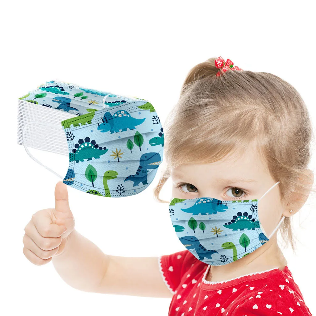 50-100 шт., детская трехслойная маска для лица с рисунком динозавра
