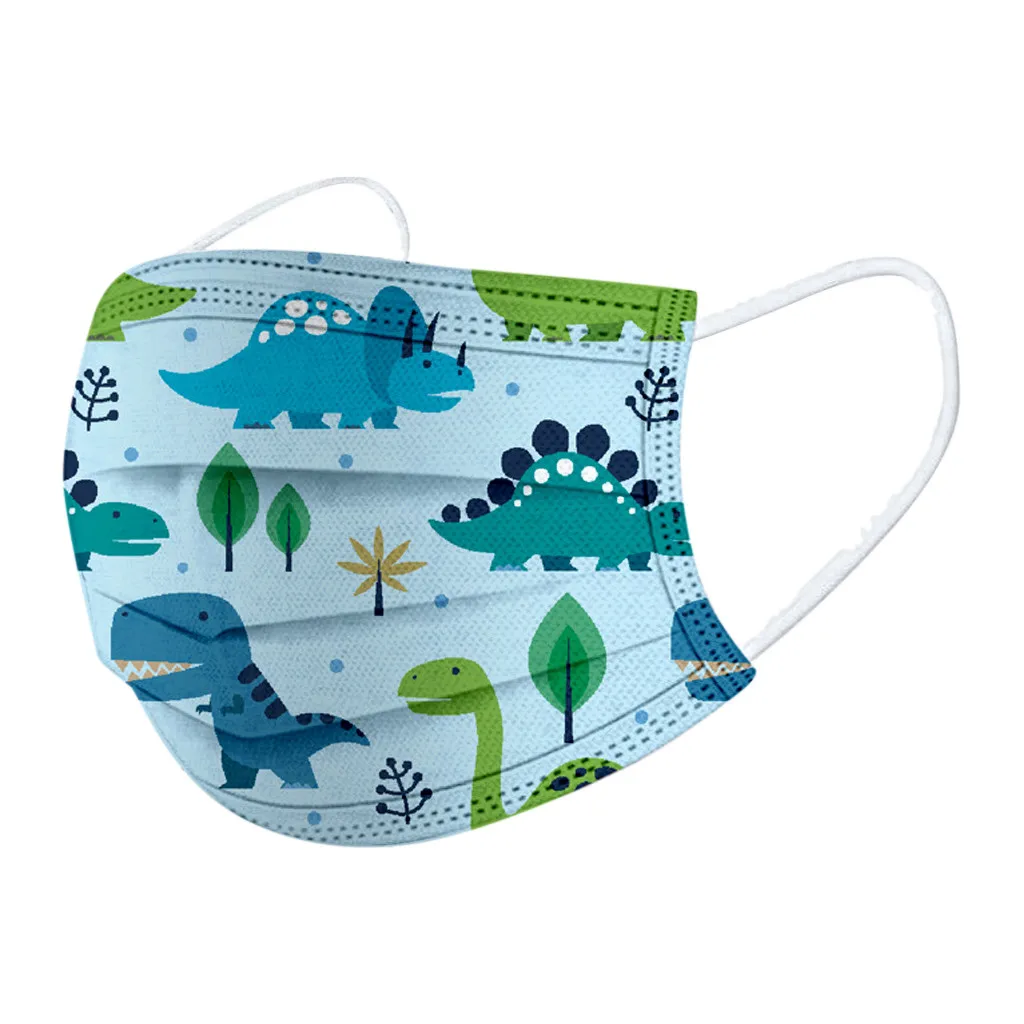 50 шт., Детские трехслойные одноразовые маски с принтом динозавров