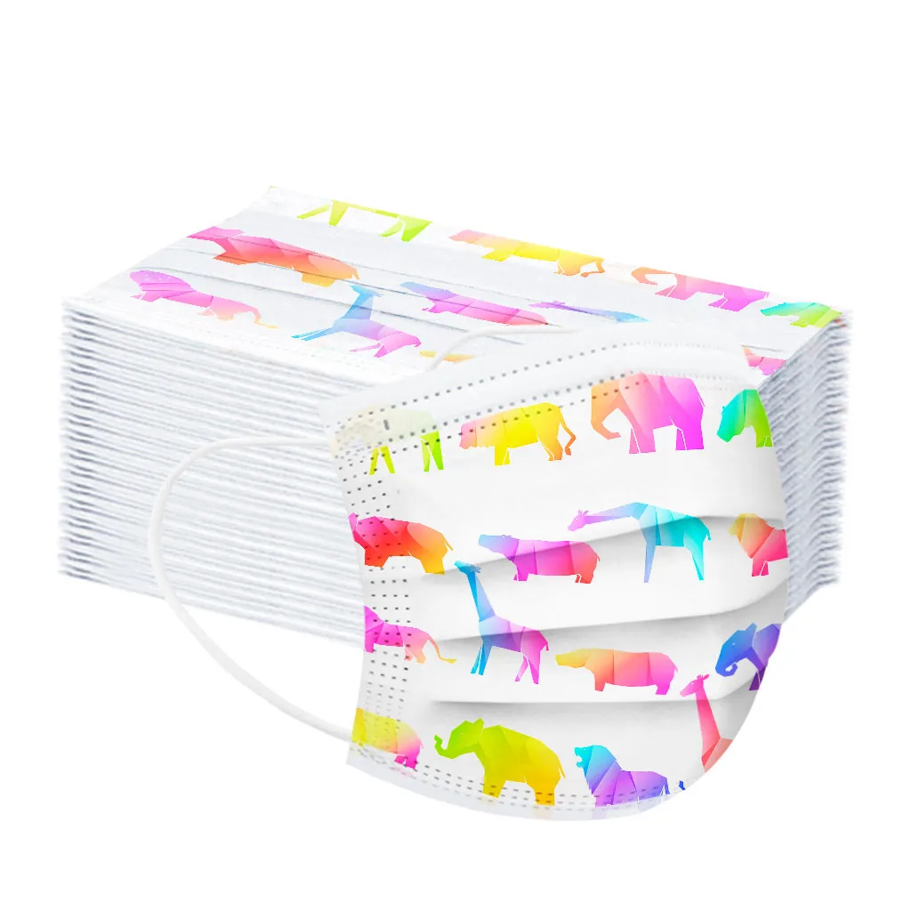 Детская одноразовая маска для лица, 50 шт., мультяшная маска, маска для Хэллоуина, косплея, 3-слойная маска с ушами