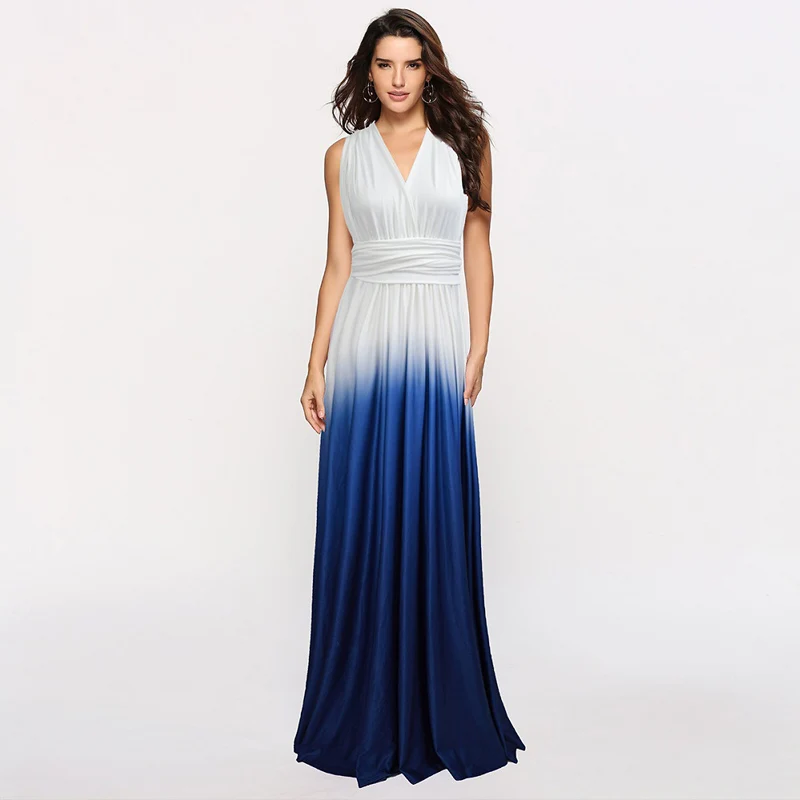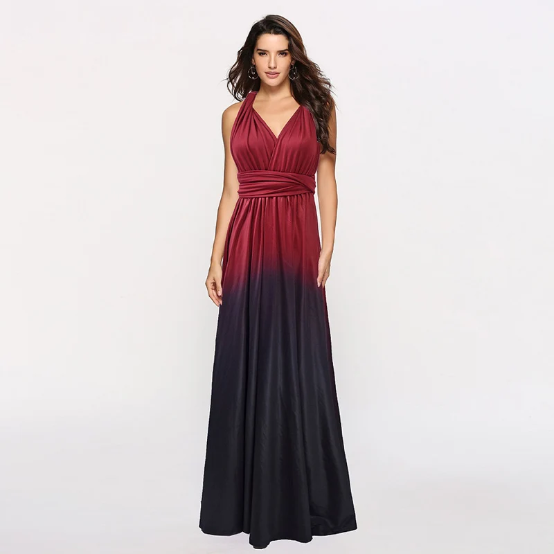 Женское длинное платье макси, летнее платье-трансформер в стиле бохо, с запахом и градиентным переходом, Бандажное вечернее платье для подружек невесты, 2021
