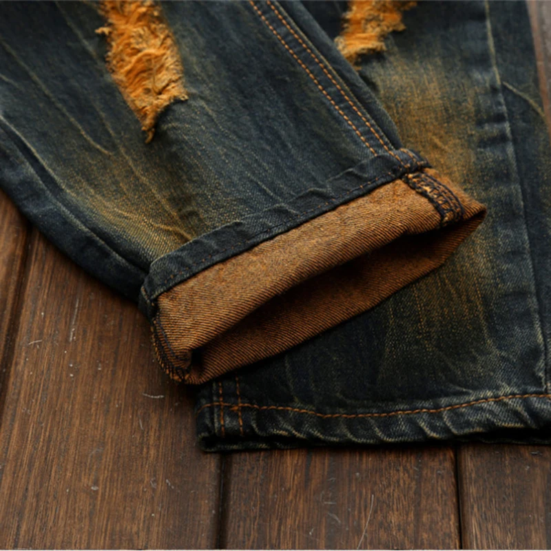 Повседневные мужские рваные джинсы, высококачественные брюки в стил...