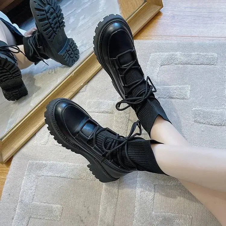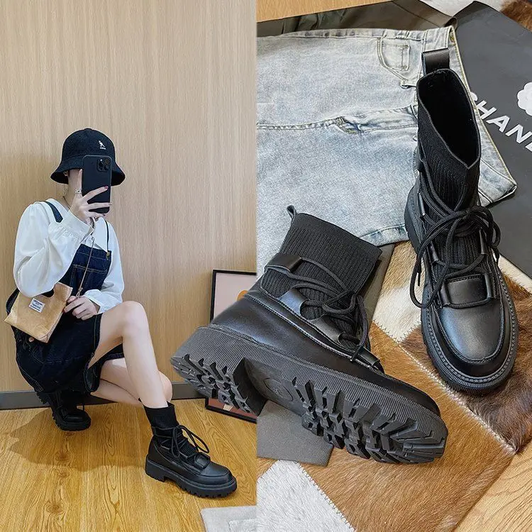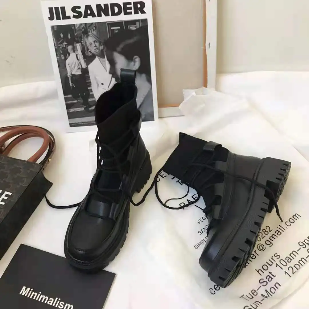 Женские армейские ботильоны на платформе, черные ботинки на шнуровке с ремешком и пряжкой, байкерские ботинки больших размеров для зимы, 2021