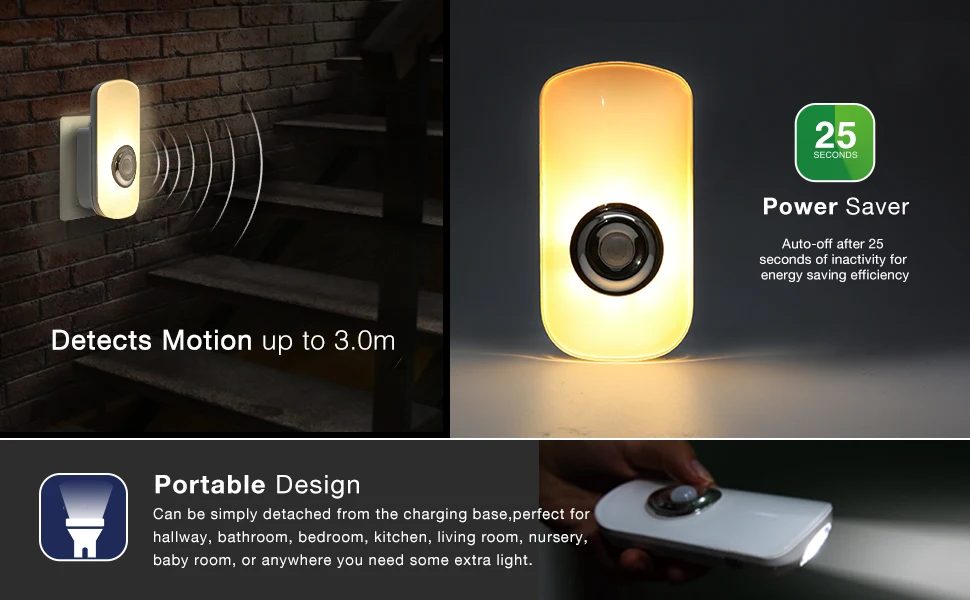 Умный светодиодный светильник 3 в 1 с датчиком движения, перезаряжаемая вспышка для детской комнаты