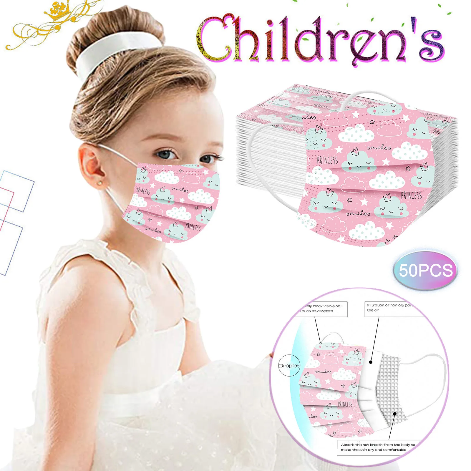 Маска детская одноразовая с фильтром, 3-слойная, с ушными петлями, косплей маски для Хэллоуина, 50 шт.