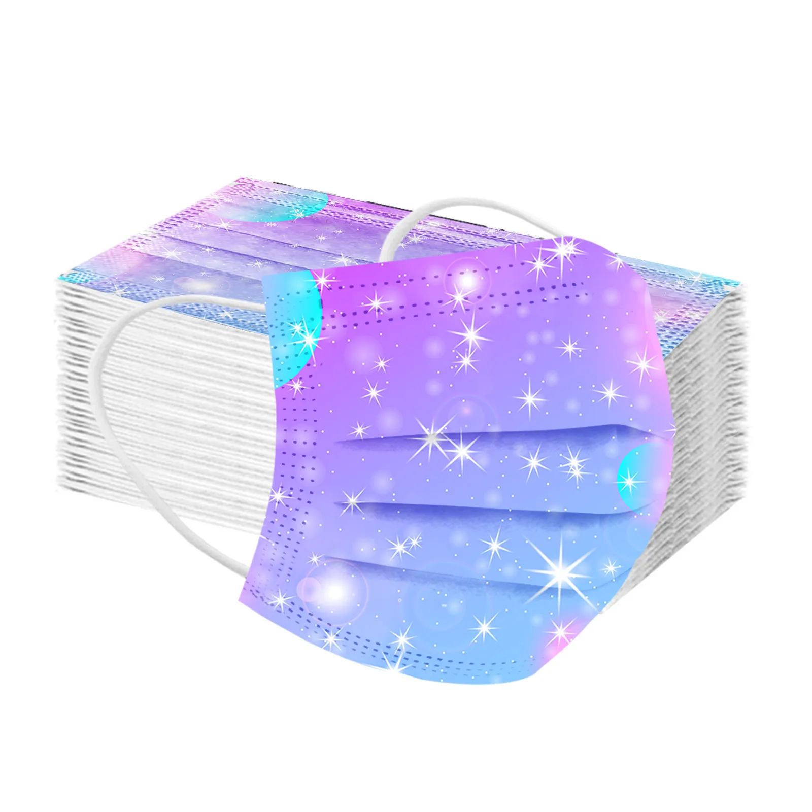 Маска одноразовая трехслойная со звездами и радужным принтом, 1050 шт.