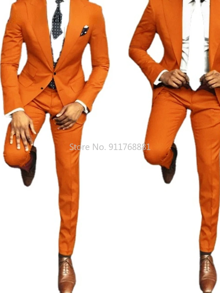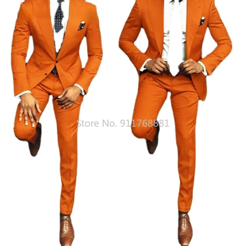 Новейший дизайн, оранжевый мужской повседневный облегающий костюм, 2 шт. (пиджак и штаны), смокинг для жениха, выпускного вечера, на заказ