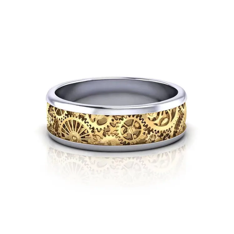 Простое винтажное механическое кольцо с золотистой резьбой, модные ...