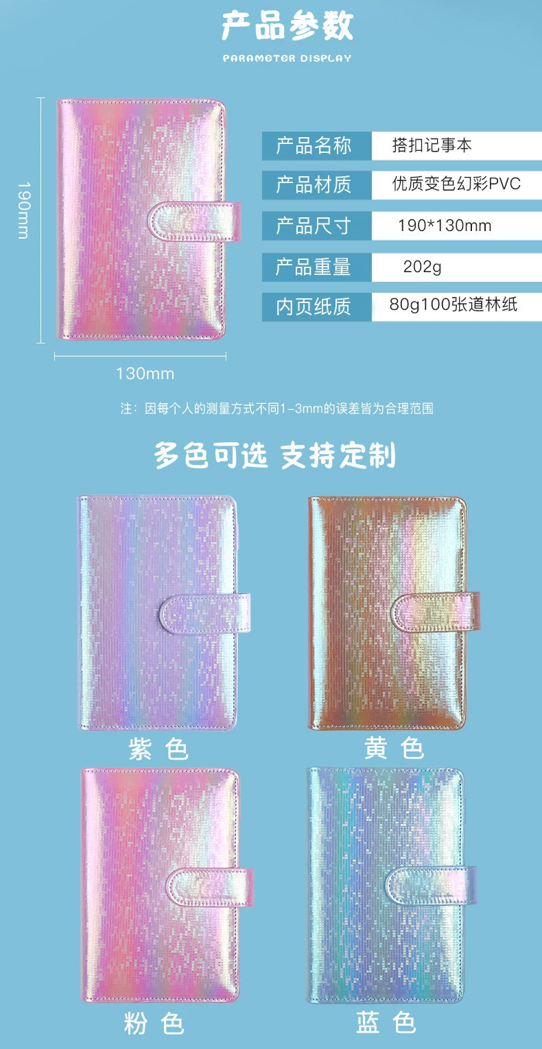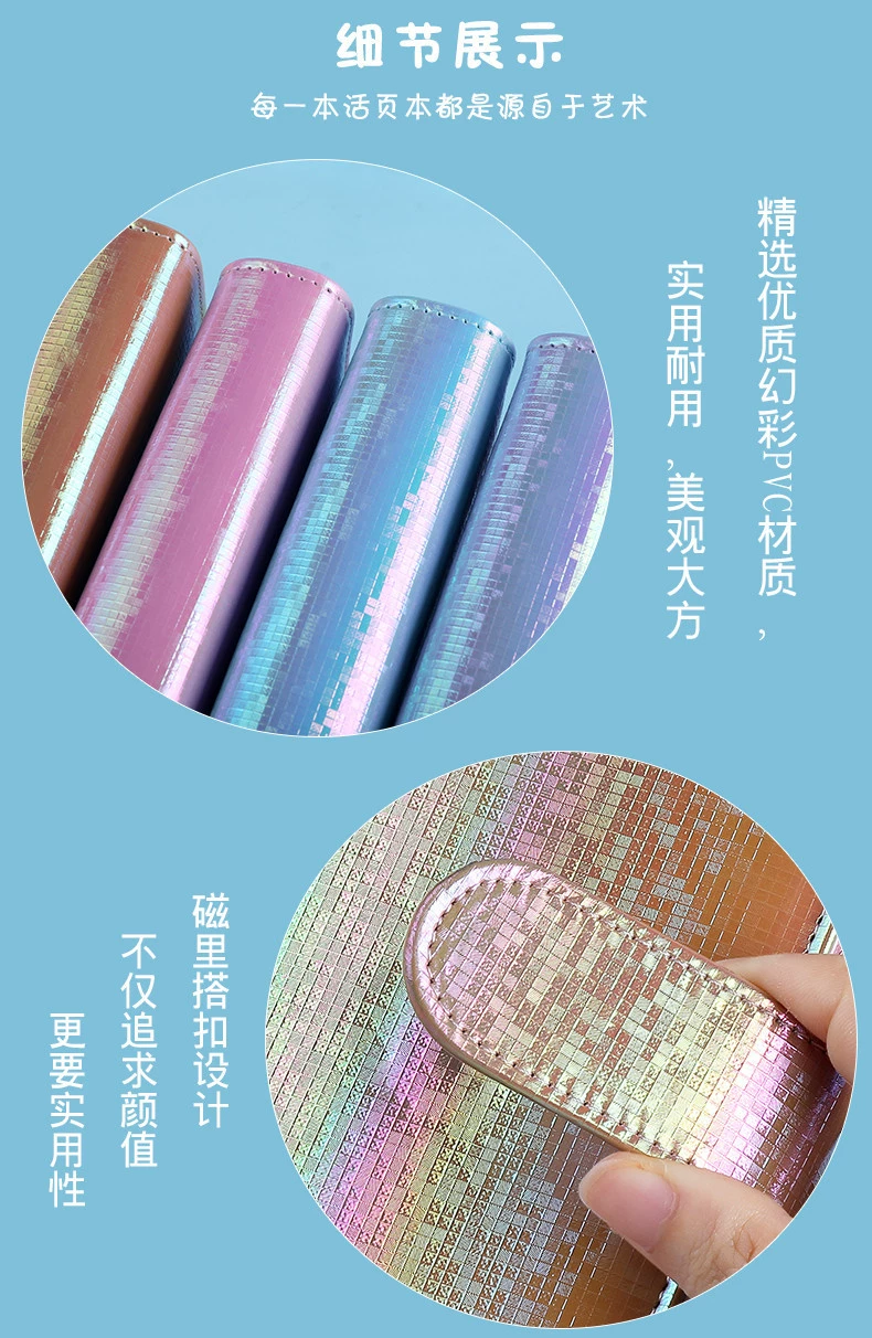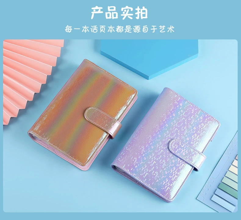 A6 Laser Glitter связующий Органайзер, цветная обложка из искусственной кожи для блокнота, дневника, ежедневника, планировщика, бумажная Обложка, школьные канцелярские принадлежности