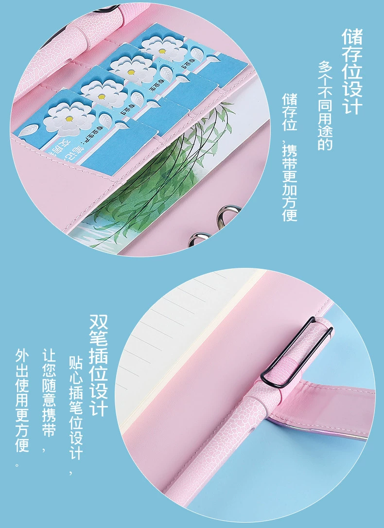 Цвет: синий, розовый, фиолетовый, белый (как на изображении)Материал: Синтетическая кожа, нержавеющая стальСтиль: кольцо-Связыватель/листы взаимозаменяемые дизайнКостюм для учебы, путешествий, работы и подаркаПростой в использовании, удобныйМягкая обложка из искусственной кожиРазмер:2 размера (A5 , A6)Pacakage включает:1 x Сменный Чехол для ноутбука (не включая страницы)