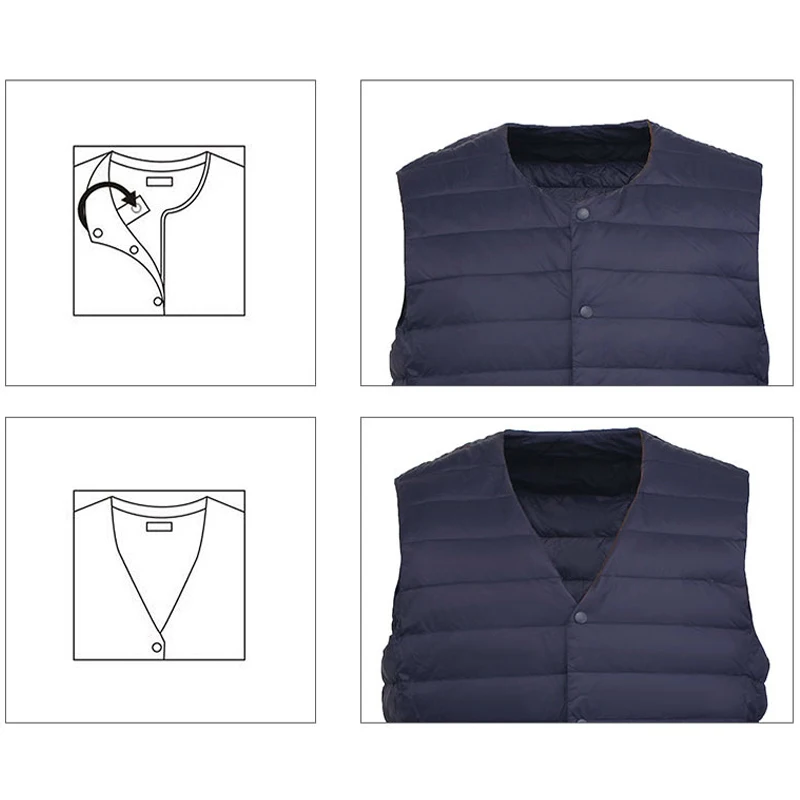 Модные мужские легкие однобортные пуховые жилеты осень-зима, белый жилет на утином пуху, повседневный жилет без рукавов с круглым вырезом