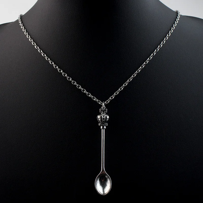 Новый золотой табак серебристый оттенок, мини чайная Корона, мини чайная ложка, Винтаж, Королевский табак, Ибица, праздничное ожерелье, нержавеющая сталь, 1 шт.