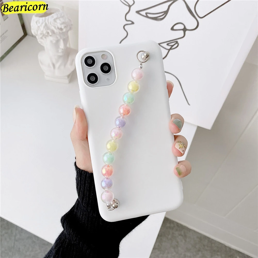 Модный Цветной силиконовый чехол с бусинами, браслетом, цепочкой, з...