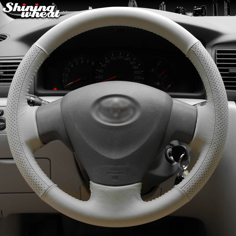 Блестящая пшеничная черная бежевая кожа Чехол рулевого колеса автом...
