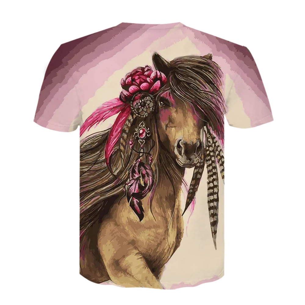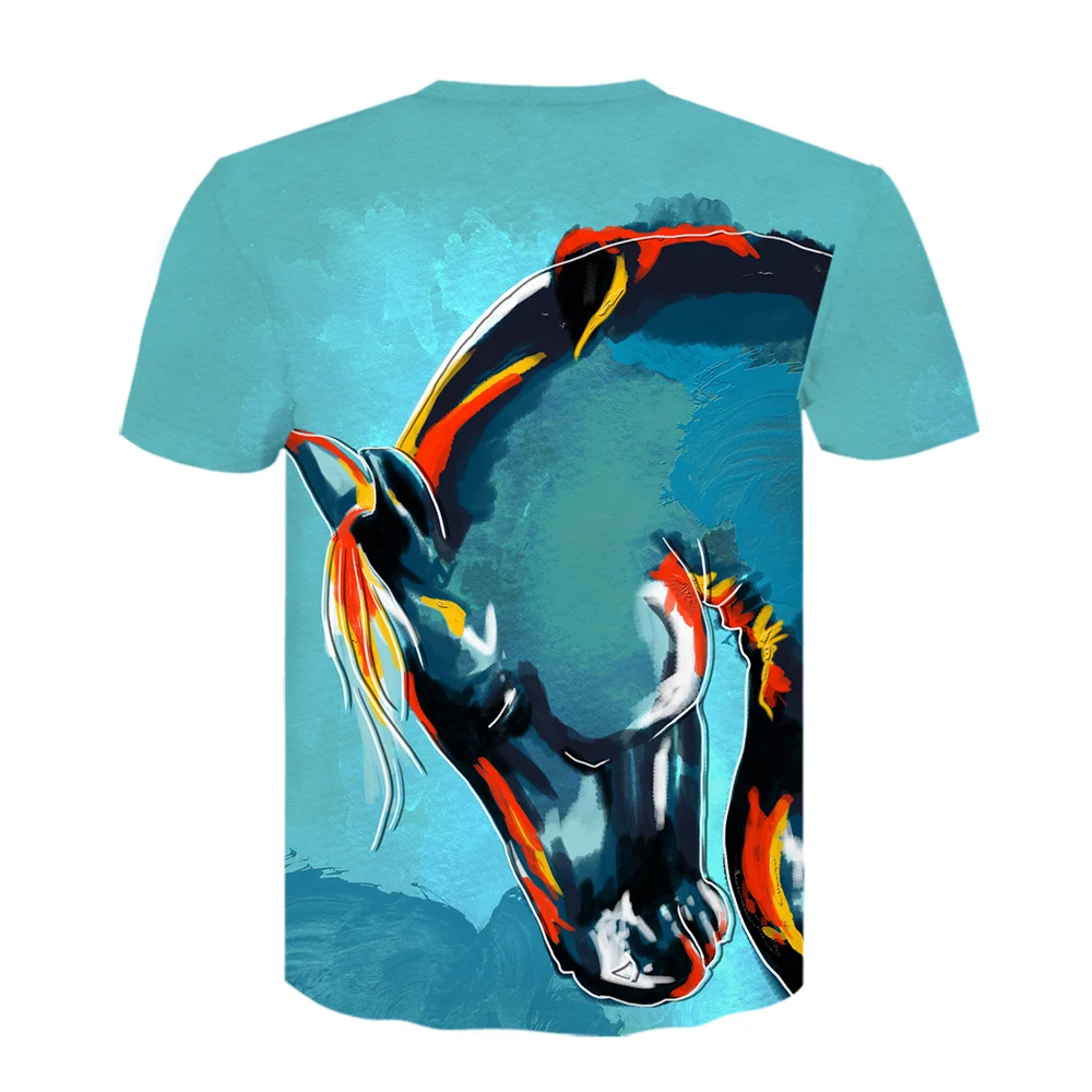 Детская летняя футболка с коротким рукавом, с принтом лошадей